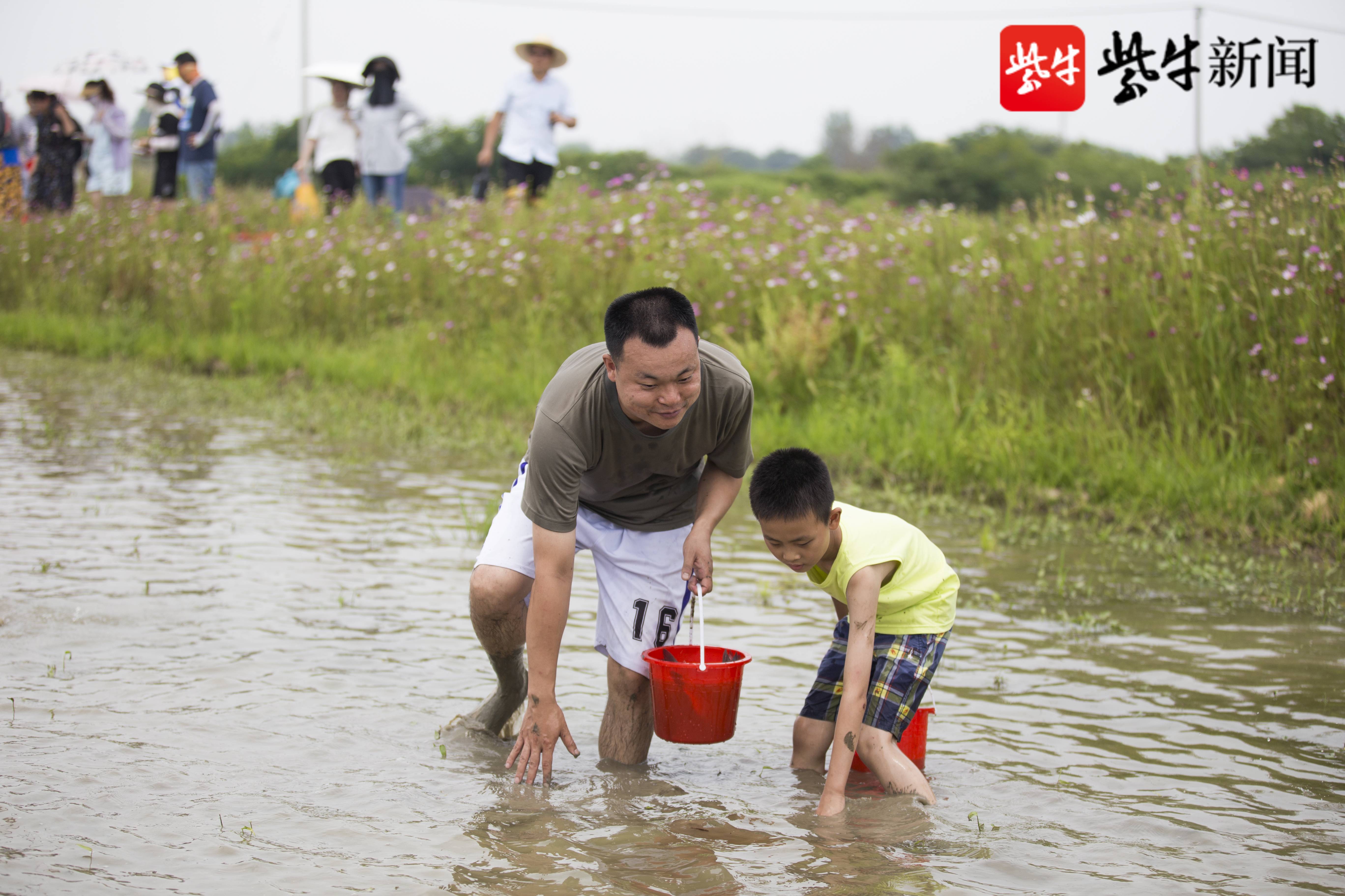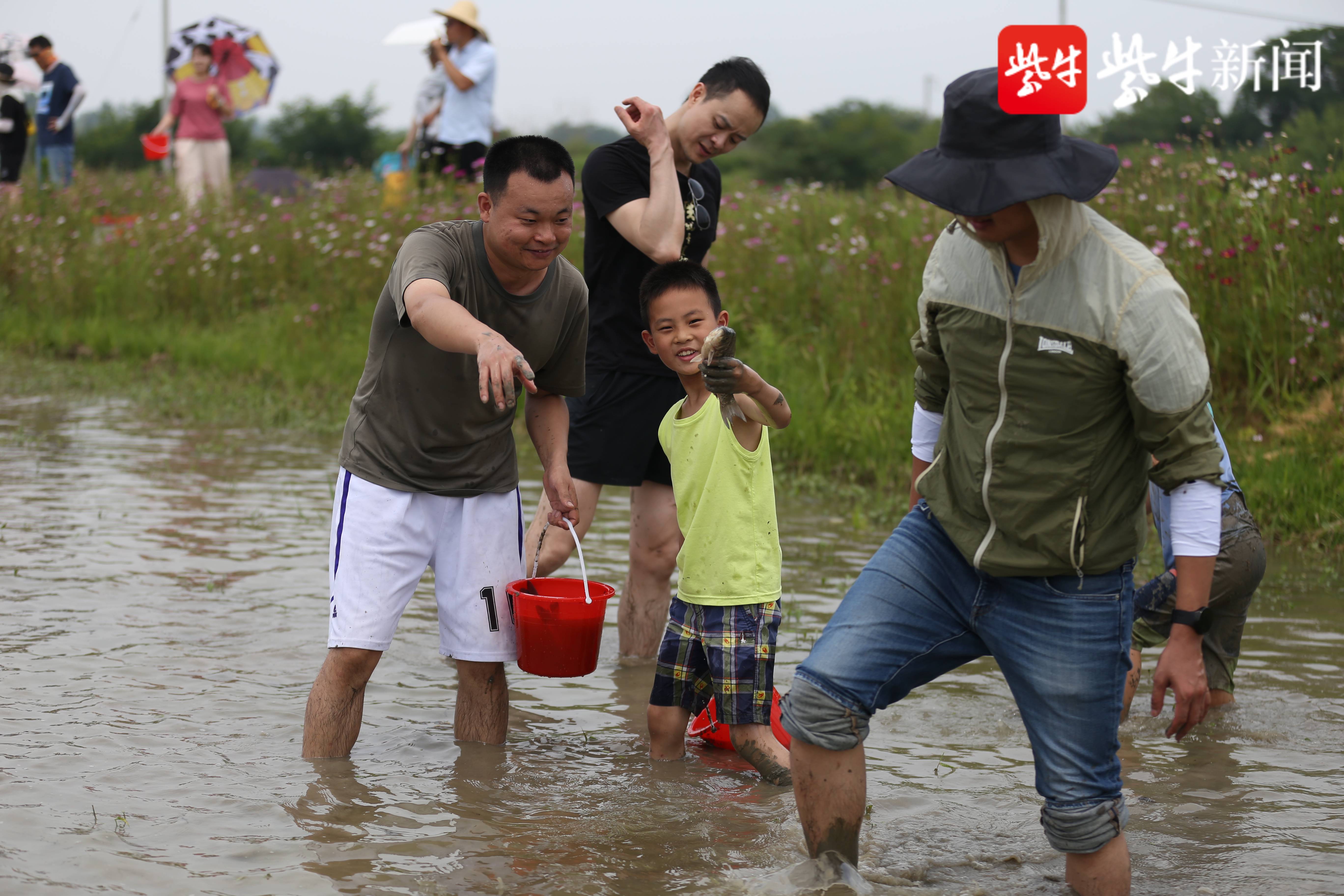 稻田摸鱼,也是孩子们的最爱!光脚丫,踩在软软的泥土里,即使在稻田里沾的满身都是泥水,他们一点也不在乎,当爸爸和孩子抓到小鱼时,脸上都洋溢着收获的喜悦。