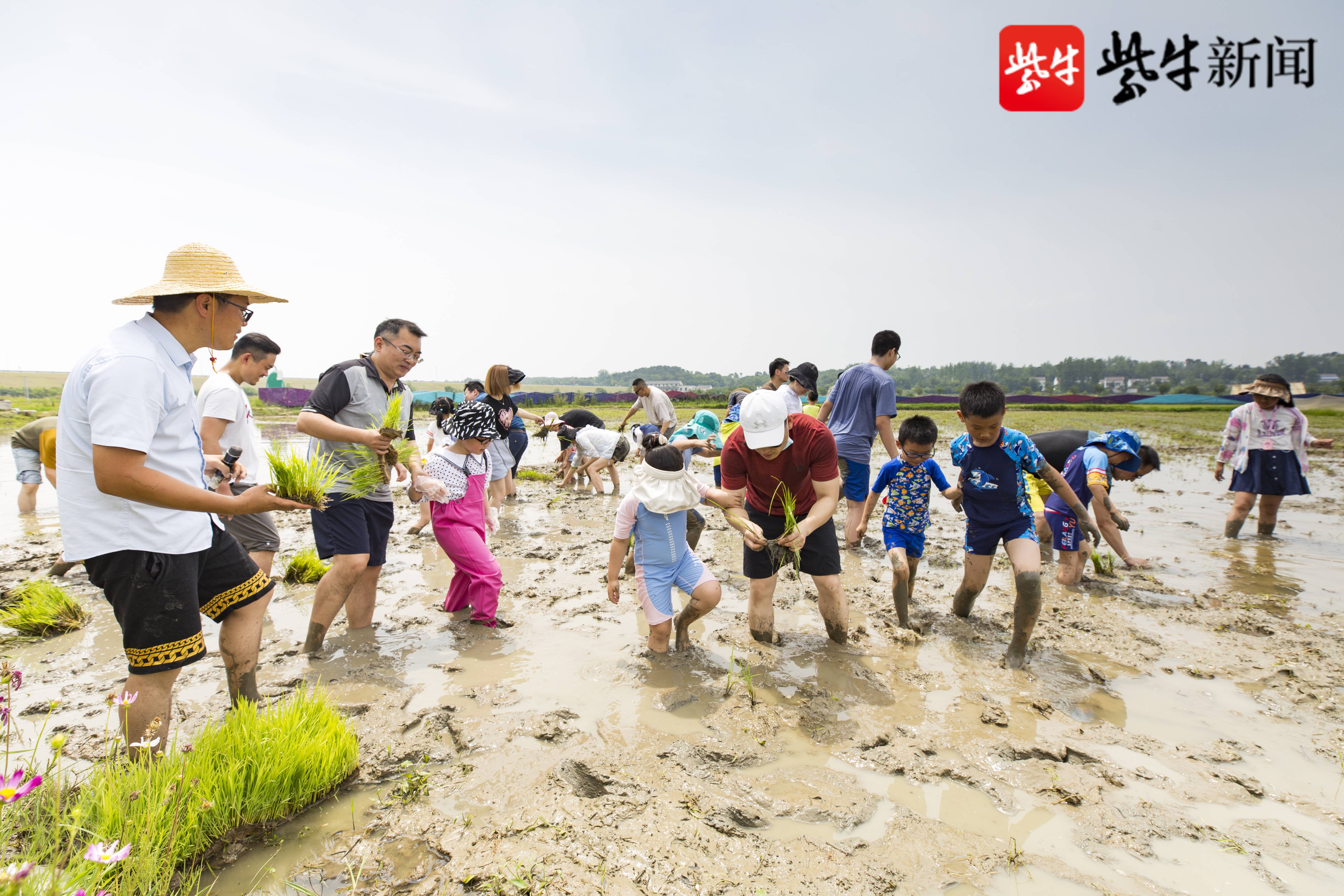 爱粮父子行 节粮进家庭 稻田插秧浑水摸鱼小小农夫体验记
