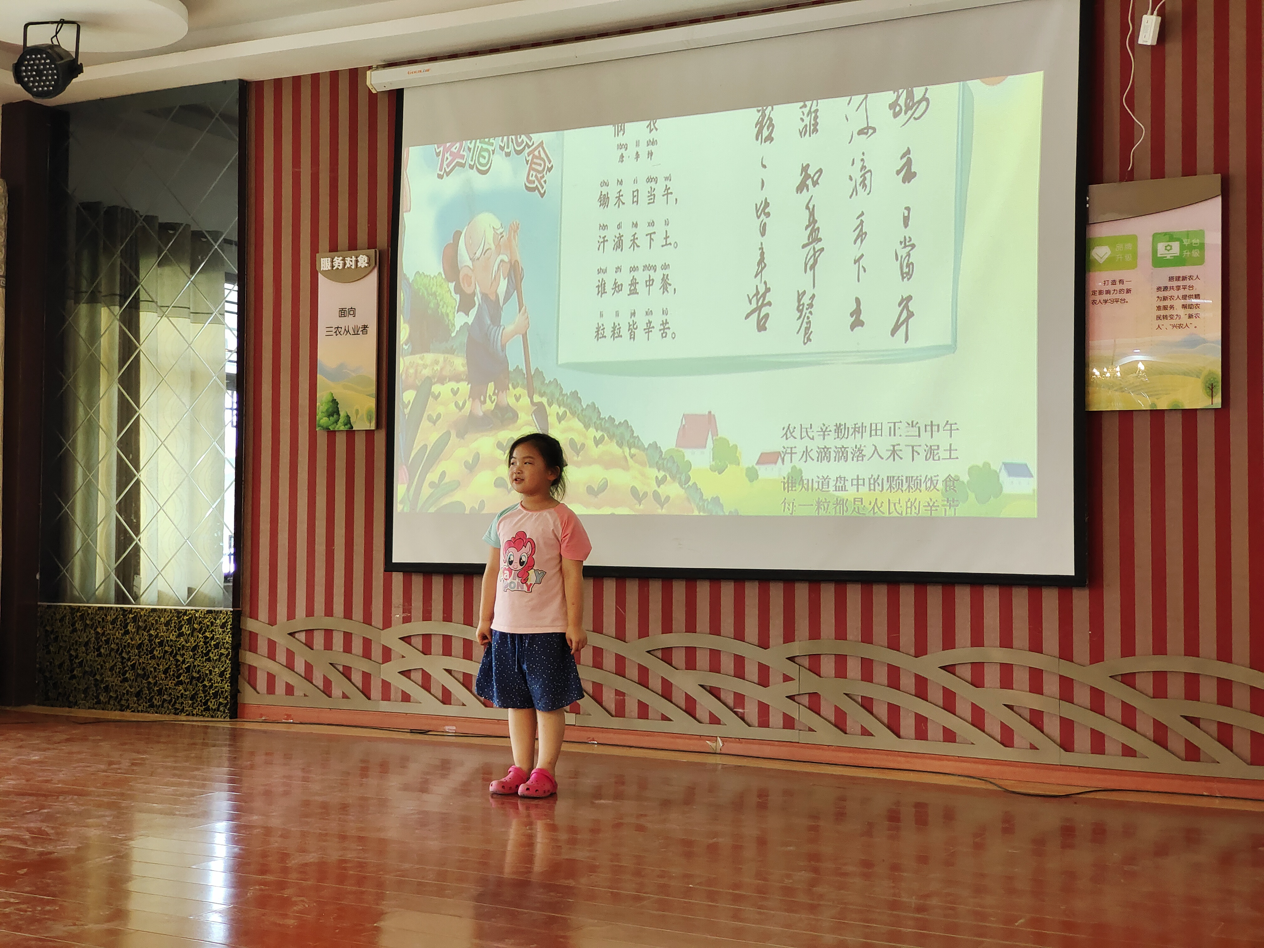 孩子上台背诵悯农