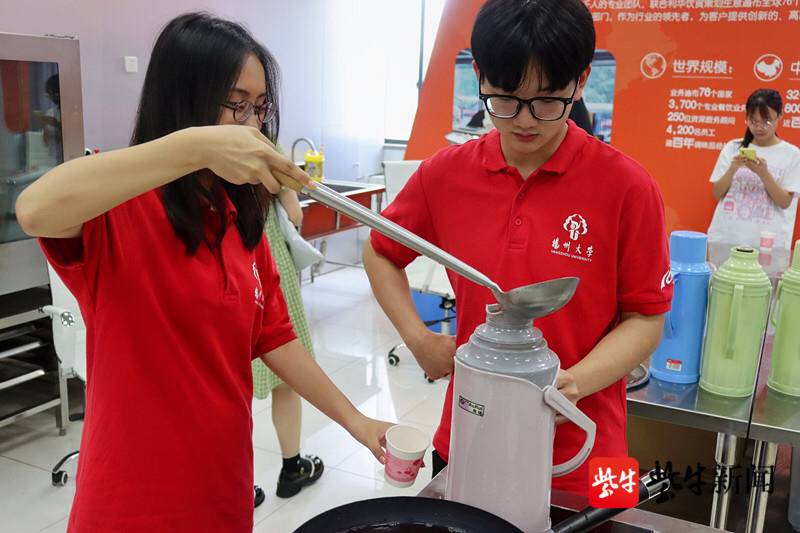 扬子晚报网7月14日讯(通讯员 鲍洁 孟阳 记者 陈咏)“叔叔阿姨,辛苦了,天热,喝杯我们熬的酸梅汤吧,消消暑气!”14日,扬州大学旅游烹饪学院·食品科学与工程学院新“食”代美食文化寻味实践团,结合自身专业进行“送清凉”实践活动。甜丝丝、凉飕飕的一杯杯专业制作的酸梅汤,喝进施工工人、学校保安、宿管阿姨的胃里,甜进大家的心里。