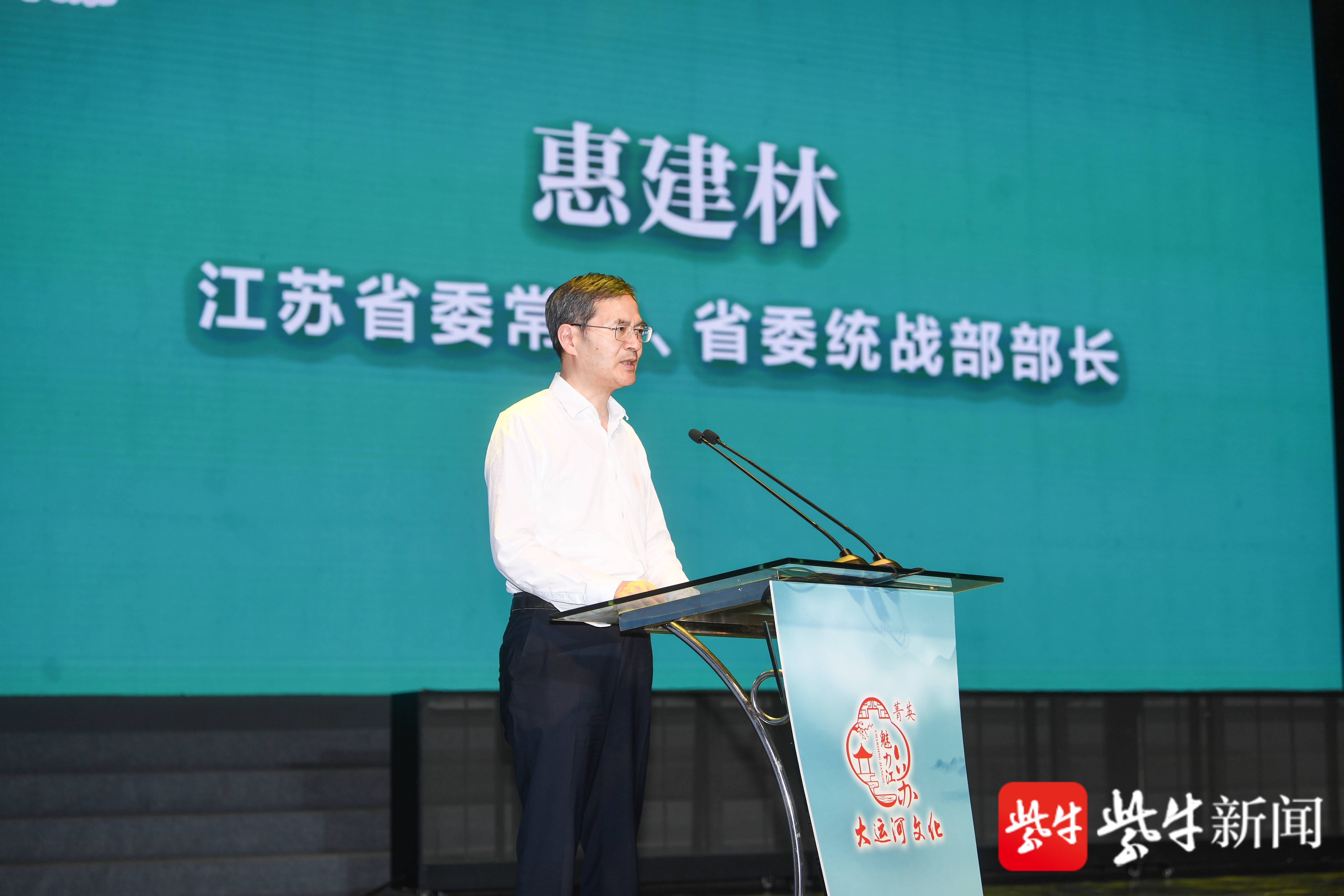 惠建林指出,大运河作为中华文明的重要标识,承载着中华民族的悠久历史和灿烂文化。2020年11月,习近平总书记视察江苏时指出,“千百年来,运河滋养两岸城市和人民,是运河两岸人民的致富河、幸福河。”大运河江苏段作为中国大运河全线开凿时间最早、沟通水系最多、覆盖地域最广、通航里程最长、文化积淀最深的河段,润泽万物、兼收并蓄,融汇汉风吴韵,串联淮扬风情,构筑了江苏人民包容开放、勇于创新、美美与共的精神内核。江苏因“运”而兴,物阜民丰,文韵深厚,在历史长河中孕育出了源远流长的运河故事、江苏故事。