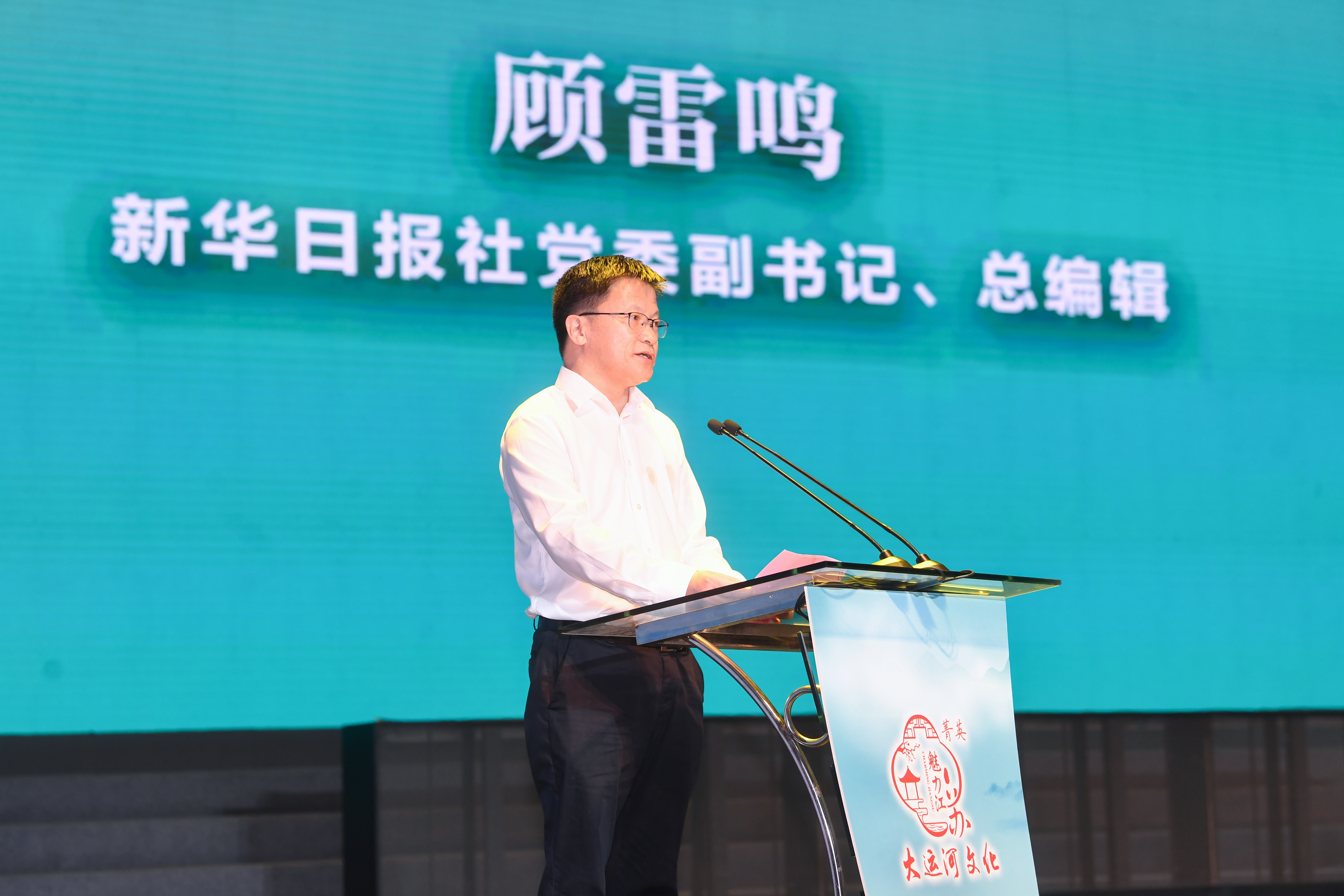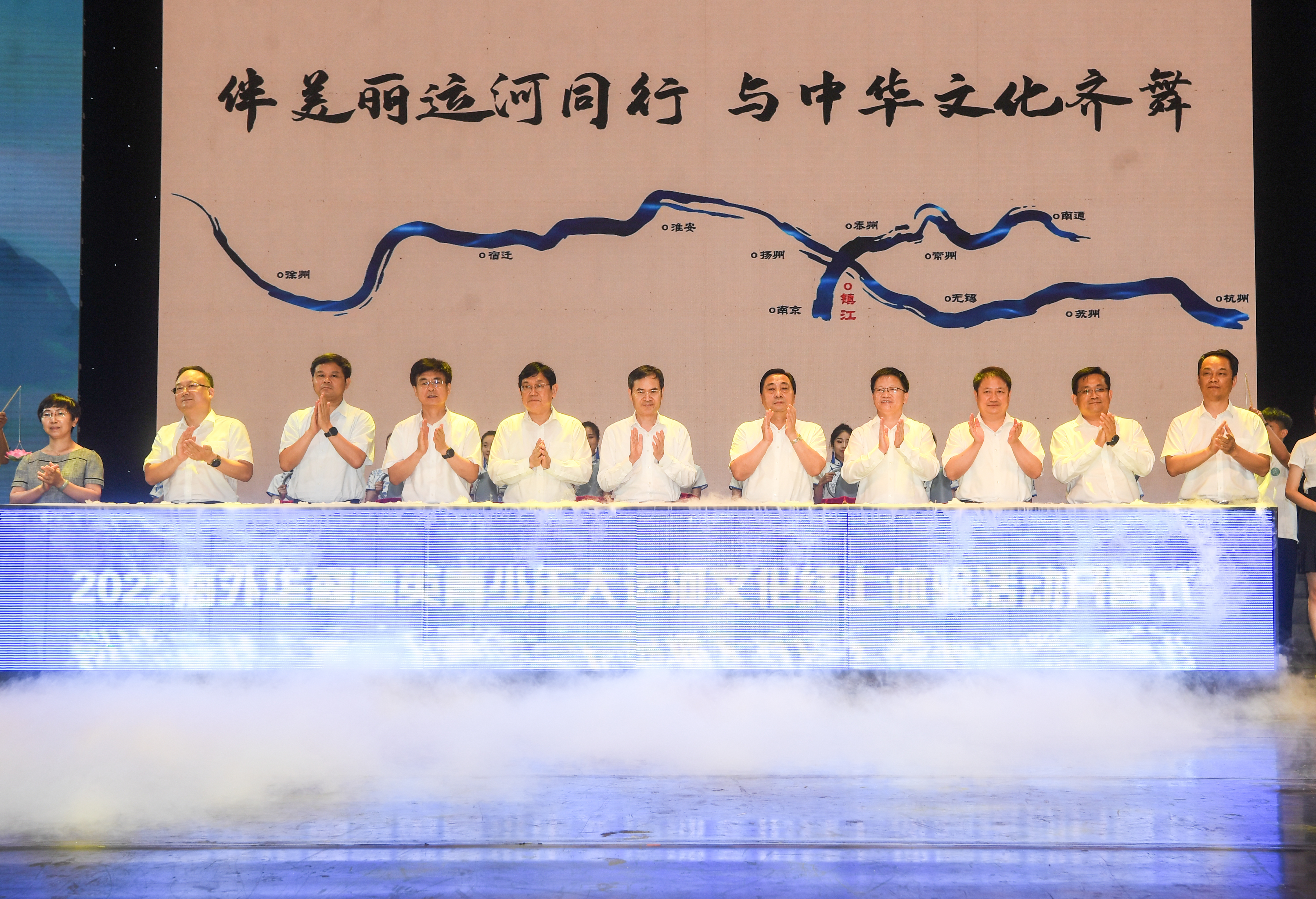 “江河交汇看镇江”,镇江市委书记马明龙致欢迎词。他说,镇江将坚持融汇古今,彰显高品质的运河文化,让大运河这一“流动的文化”“活态的文化”流光溢彩、生生不息,更好地为今人服务、为后人所用;注重生态保护,建设高颜值的生态长廊,使“万古流不绝”的大运河展陈为清新明亮、水城共融的优美生态画卷;讲好运河故事,打造最动人的诗和远方,让大运河成为世界人民的向往,努力续写镇江大运河文化带建设的崭新篇章。