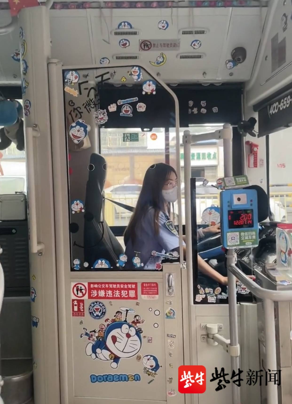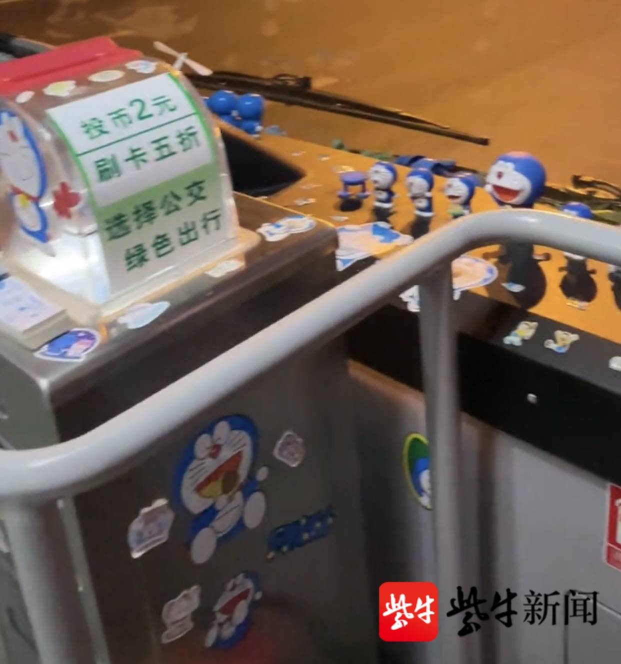 “我们这辆公交车以哆啦A梦作为主题装饰其实已经有两年了。”翟女士告诉记者,在2020年,已经28岁的她在一次行驶途中突发奇想,“我当时看着有些上车的乘客愁眉苦脸的,就想着能不能让他们在上车之后变得开心一些,有一个愉快的乘车体验。”作为一名90后,平日里尽管在岗位上,也坚持把自己打扮精致的翟女士便开始打起了公交车的主意,“因为女生就爱装扮东西嘛,我也不例外,恰好我小时候特别喜欢动漫角色哆啦A梦,所以就想着把车打造成这个主题。”