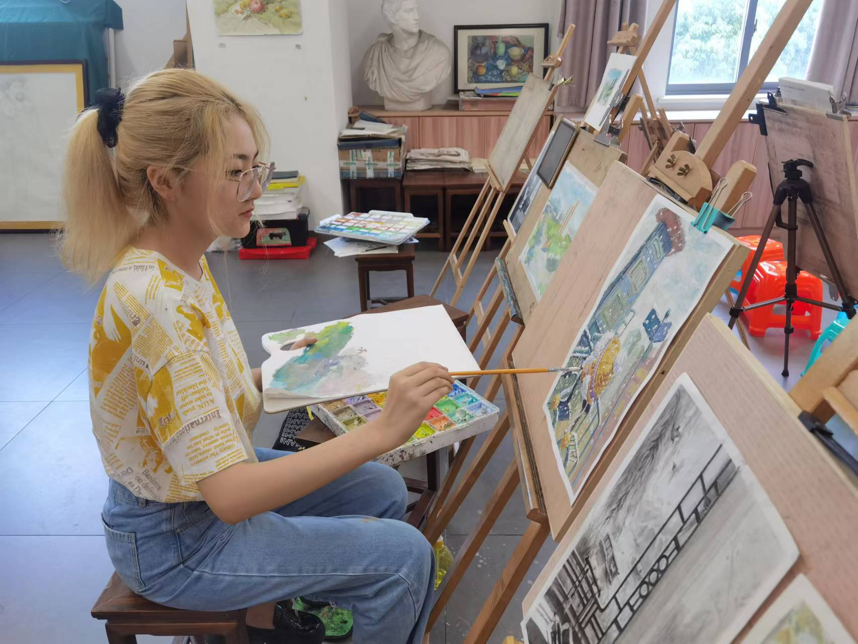 黄欣怡说:“高三专业集训期间,我们每天早晨7点半上课,晚上12点下课,期间不停地画画,就连过年都是在画室里度过的,只放了两天假。”回想起那些为梦想拼搏的日子,黄欣怡的心里感慨万千。
