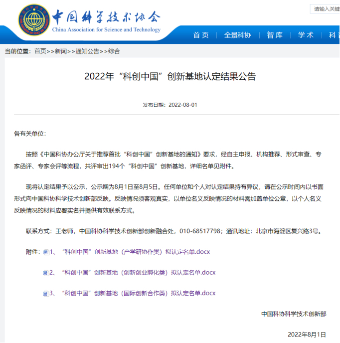 “科创中国”是中国科协打造的服务品牌,目的是构建资源整合平台、供需对接平台、技术服务和交易平台,让科技更有效地服务经济社会高质量发展。创新基地是中国科协推动产学研协同创新和科技成果转移转化的合作载体、“科创中国”各类资源下沉汇聚的承接平台,共分为产学研协作、创新创业孵化、国际创新合作三种类型。