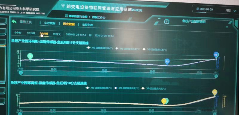 扬子晚报网1月29日讯(通讯员 吴启超 记者万凌云) “目前鱼跃产业园环网柜鱼跃Ⅰ线1#分支箱进线温度为9.5摄氏度,暂无异常。”1月29日下午2时,丹阳市供电公司工作微信群内,配电运检中心值班人员利用输变电设备物联网管理与应用系统,实时监测江苏鱼跃医疗设备有限公司供电设施运行状况,确保该企业24小时电力正常供应。