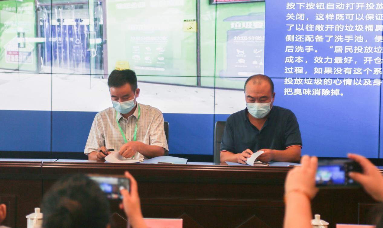 为了改善小区居民生活环境,该街道对辖区省级达标、争优除差晋级等24个小区垃圾分类设施进行改造升级,增加灭菌除臭设备,共涉及63座垃圾分类亭,256个投口,并通过定时定量喷淋微纳锌药剂,有效灭杀抑制细菌滋生,降低生活垃圾中有害气体对居民造成的危害和环境污染,助力了垃圾分类工作的持续开展。当日,南苑街道办事处和南京清卫源环境技术有限公司签订了《南苑街道部分小区垃圾分类收集点升级改造(除臭设备)项目》协议书。
