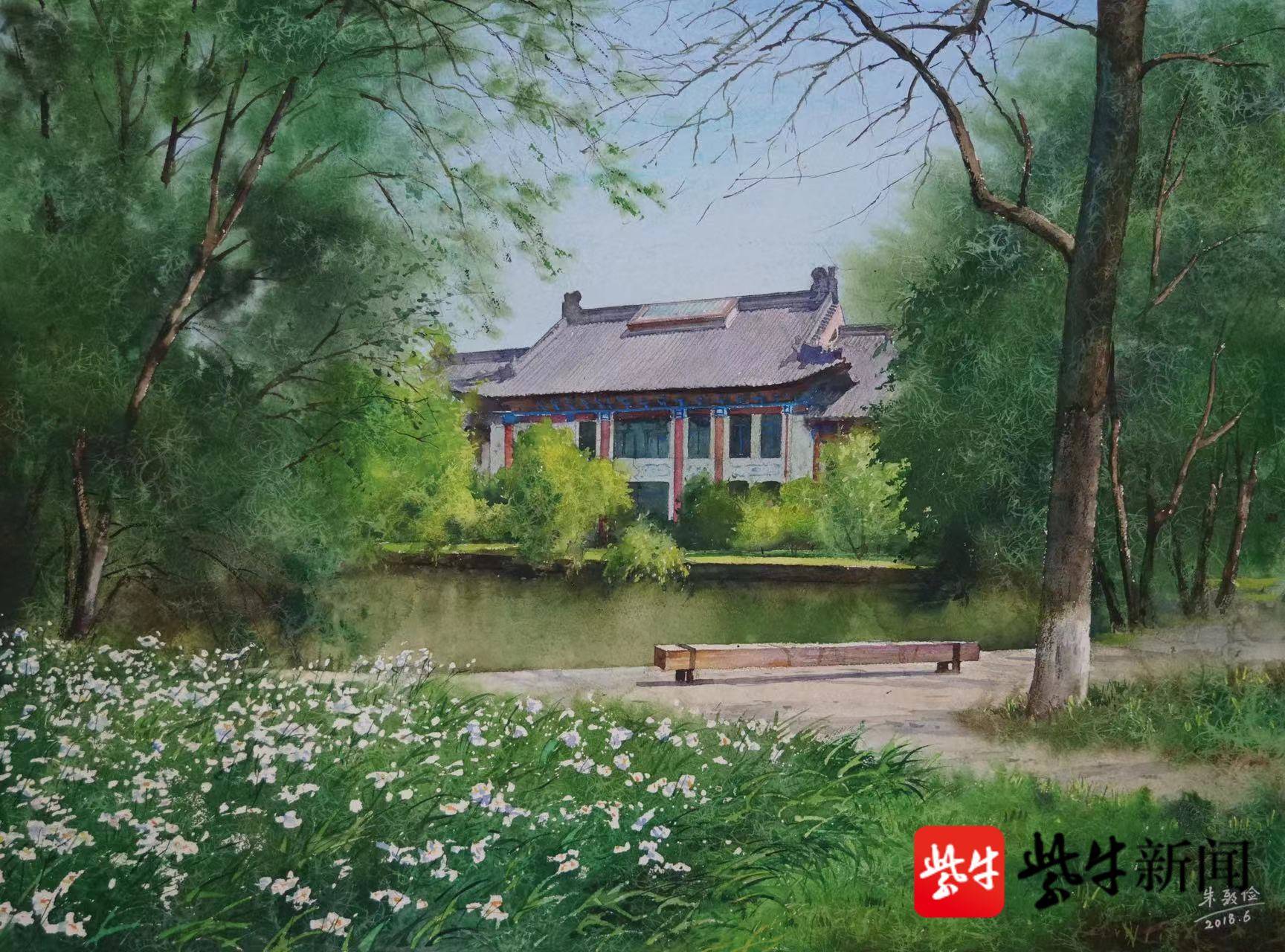 南师大退休教授创作随园校区风景明信片,“用美术作品唤起校友回忆”