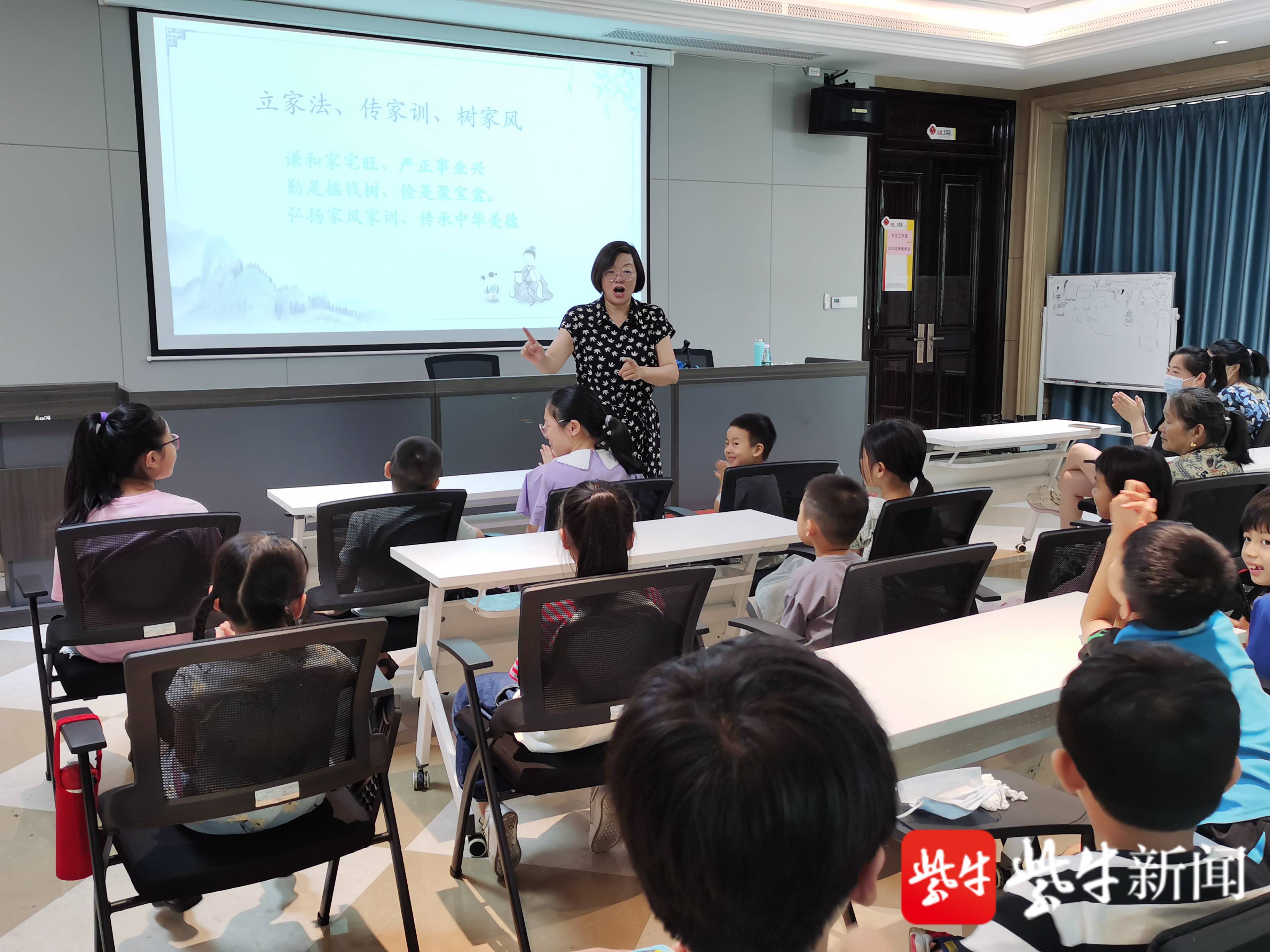 金润社区组织辖区青少年集体诵读《颜氏家训》选段、《曾国藩诫子书》选段,由专业老师讲述“尊老爱幼、母慈子孝、父严子贵,家风要正、家教要严、家道才兴”等观念和道理,帮助青少年树立“忠孝、和睦、正直、自强、感恩、奉献”等优秀品德。