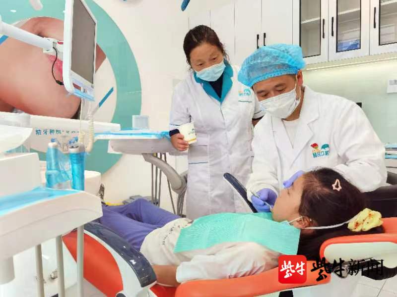 图为荀月文医生正在为少年儿童进行口腔正畸。
