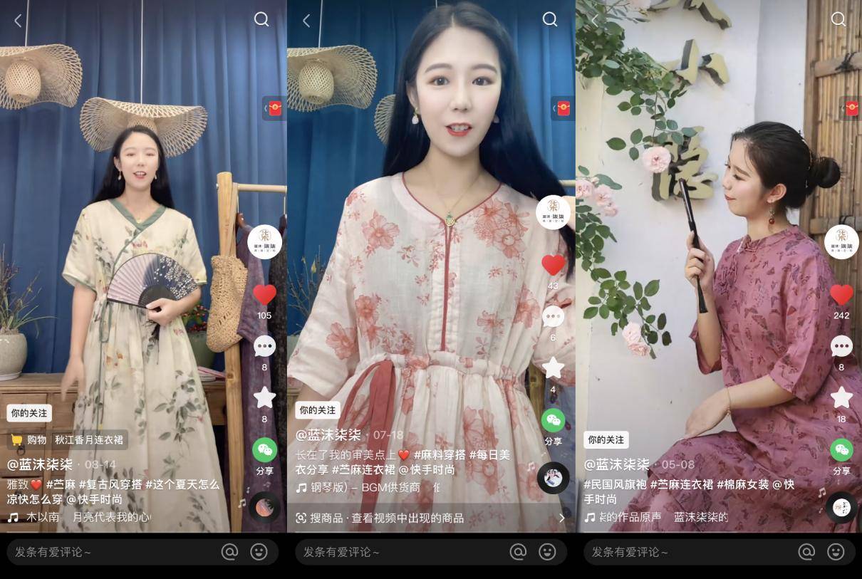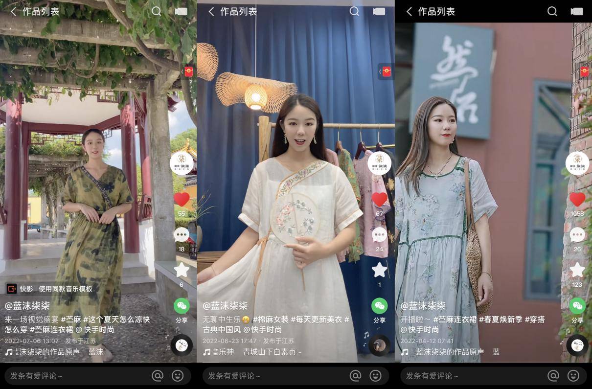 几乎没有犹豫,阿峰就确定蓝沫品牌夏装主打棉麻、苎麻面料,走和苎麻调性相符的“新中式”路线,并组建起品牌账号矩阵,推出了颜朵朵、聪妹妹等月销百万的主播账号。