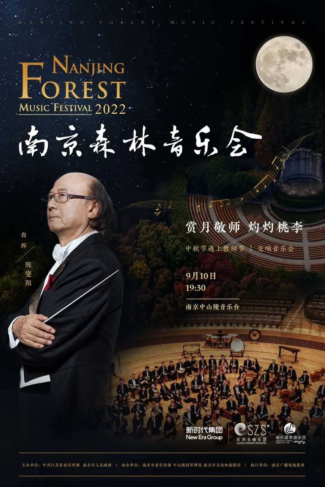 中秋节和教师节在今年首度重合,9月10日,苏州交响乐团带来一场首度融合“赏月”“敬师”主题的中秋交响音乐会。当天,音乐会邀请国内指挥界的老“先生”陈燮阳执棒,让音乐爱好者们透过中山陵音乐台的舞台,聆听饱含师恩传承的世界之声和中国经典。