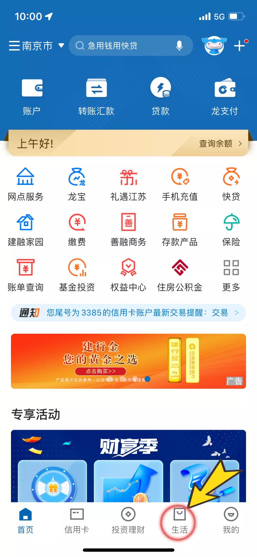 近日,建设银行手机银行平台成功上线“租房提取公积金”业务,缴存职工在登录建设银行手机银行APP后,打开“生活”找到“南京公积金”,点击业务大厅即可办理租房提取业务。