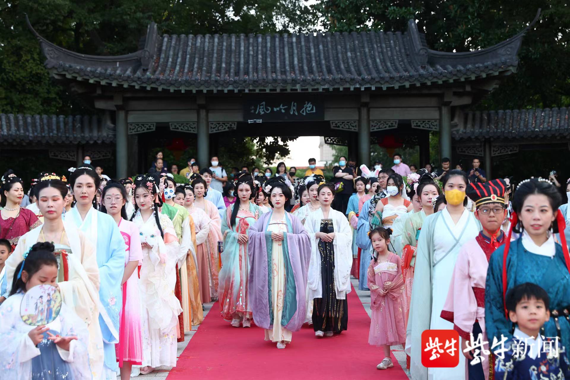 除了充满传统特色的祭月仪式,当晚在莫愁湖公园还将举办放荷花灯、汉服巡游等精彩活动。众多汉服爱好者在莫愁湖聚集,带领大家“穿越时空”,感受古人的风雅中秋。