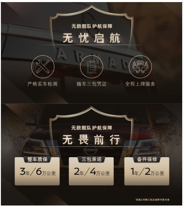 无畏前行——在用户购车款内就包含3年6万公里的整车质保,2年4万公里的三包承诺,以及1年2万公里的三包外备件保修;