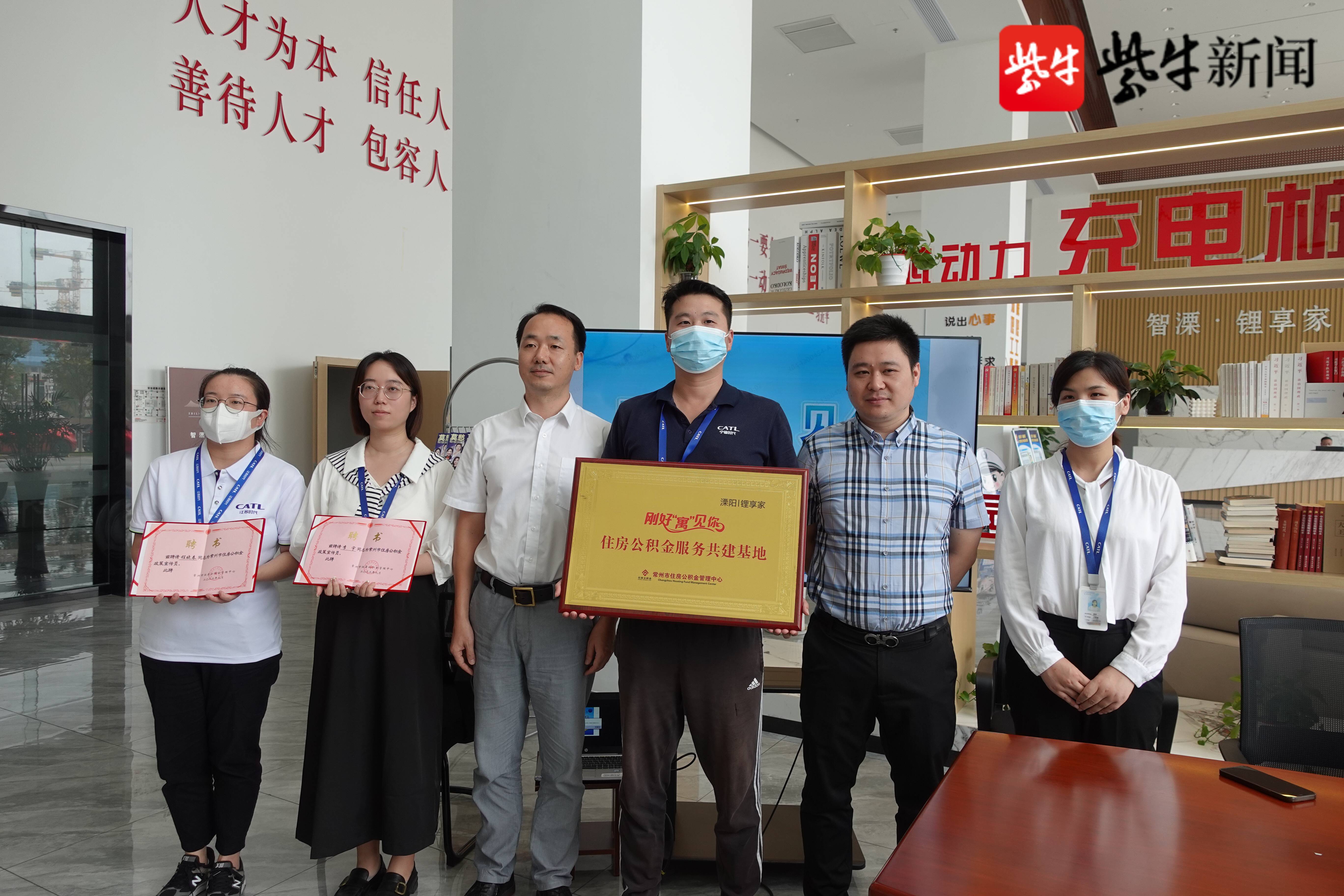 活动现场,溧阳市住房公积金部门负责人向“锂享家”人才公寓授予“服务共建基地”,为两位企业员工颁发政策宣传员聘书。