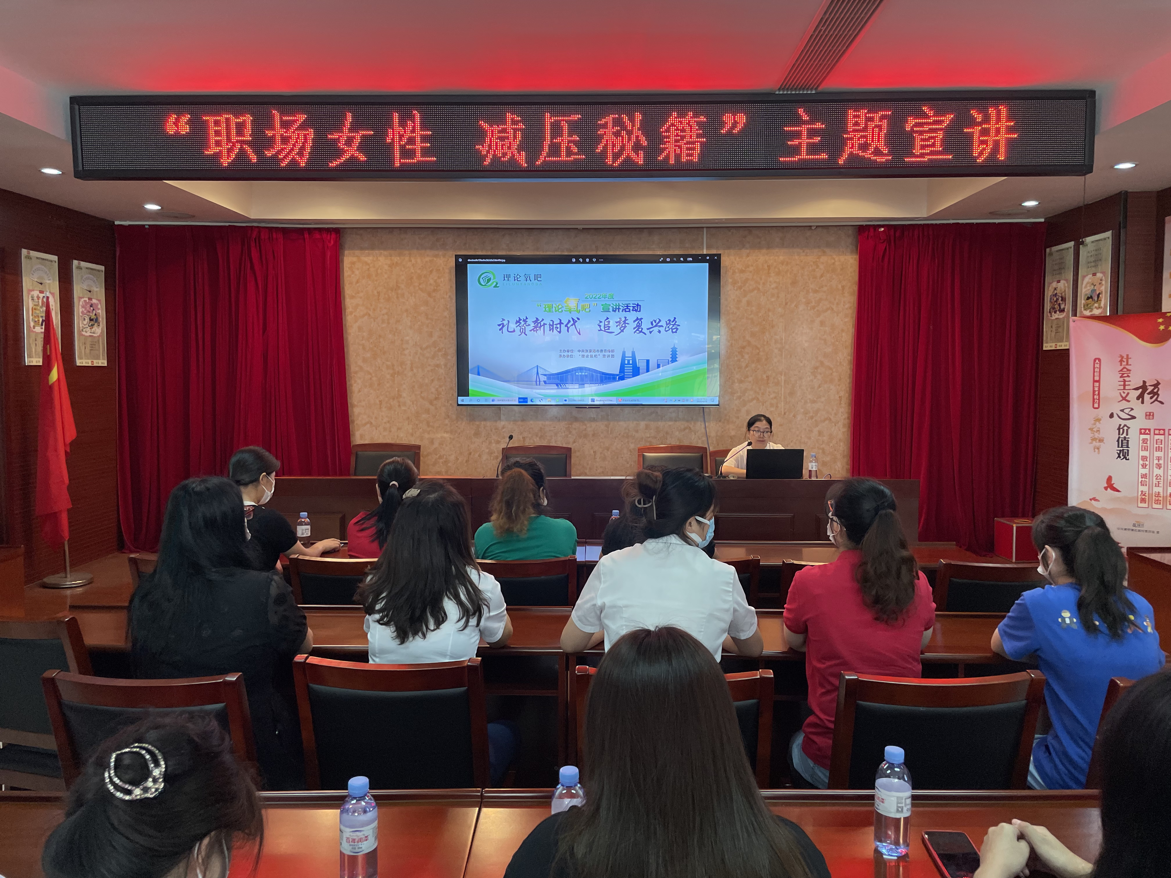 讲座中,张家港市“理论氧吧”宣讲团讲师黄艳从认识心理学、女性常见心理问题及自我疗愈等方面,深入浅出地为女职工们作了讲授。针对现代社会生活节奏加快中,女性怎么平衡工作上和生活上的压力,如何正确处理夫妻关系和子女教育关系等问题,黄艳以心理学为基础,用专业的心理学知识、丰富的实践经验、贴近生活的事例,深入浅出地与大家进行了分享交流,帮助在场女性职工塑造积极心态,提高自我认识和情绪管理的能力。