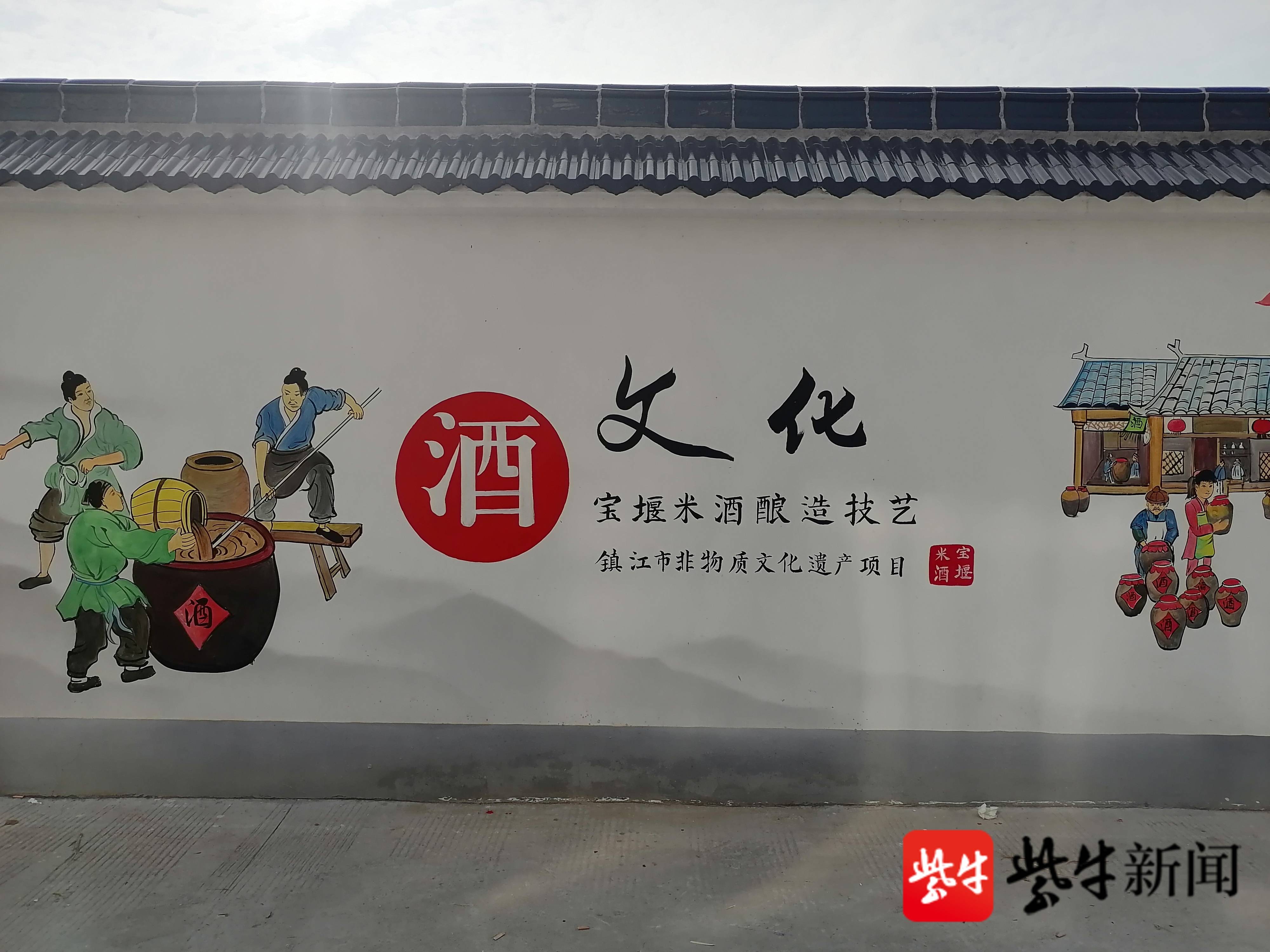 扬子晚报网9月27日讯(记者张凌发通讯员李国平 庄琴)27日上午,镇江丹徒区宝堰镇团结村申公塘自然村头60米的路边墙壁上,被画上了20多幅彩色的栩栩如生、多姿多彩的墙画,这些墙画的内容从农耕文化到非遗米酒酿造技艺文化。一幅幅农耕劳作,一坛坛飘香的米酒,一道道传统工艺的制作瞬间,一个个米酒酿造传承人辛劳的身影在墙上活灵活现。