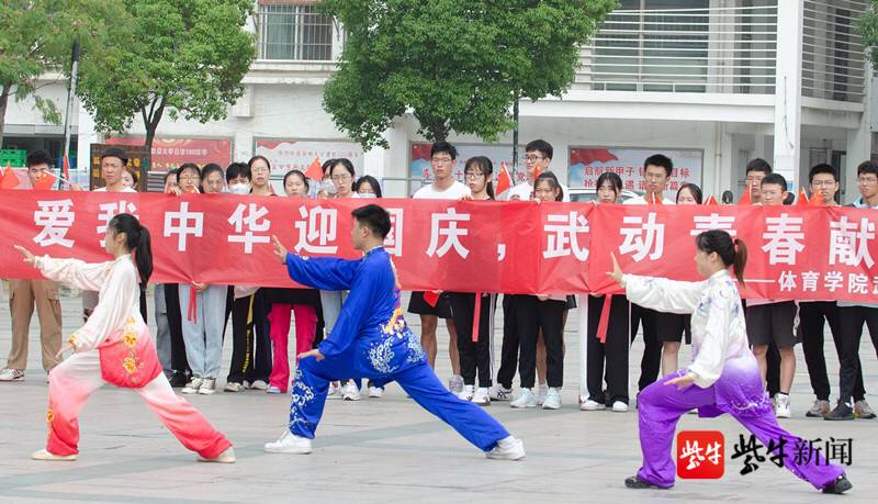 扬子晚报网10月2日讯(通讯员 祝玮 记者 陈咏)1日,扬州大学体育学院在扬子津校区广场举办“爱我中华迎国庆,‘武’动青春献丹心”快闪活动。学院民族传统体育专业的同学,以舞狮、太极拳、武术套路等项目,欢度国庆。