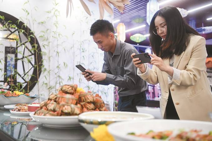 带货主播参加兴化大闸蟹美食体验活动。 新华日报·交汇点记者 邵丹 摄