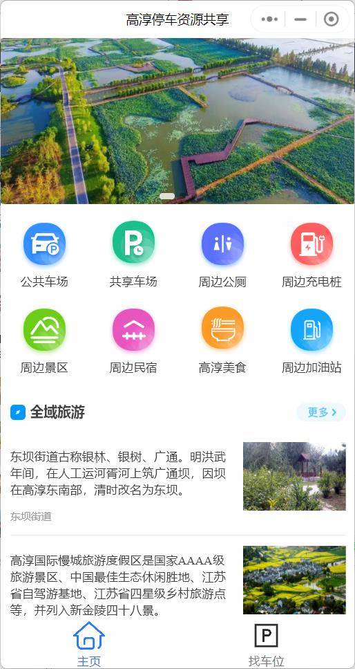 高淳区开通微信公众号“淳停车”、小程序“南京市高淳停车资源共享”,打造三级诱导装置,让车主享受找、导、停、付、服一站式停车服务,体验到真正的停车有位、出行无忧。同时,“南京市高淳停车资源共享”小程序还包括“全域旅游”子栏目,将区域内最具特色和较高人气的大山村、吕家、高岗村等21个省级特色田园乡村;国家森林公园“游子山”、中国首个“国际慢城”、明清古街“高淳老街”等15处旅游景区;渔隐朴宿、简庐民宿、兰园民宿等37处民宿农家乐;新四军驻高淳办事处旧址、西舍“红色堡垒”、游子山烈士陵园等5处红色旅游基地收录其中,绘制独具特色的高淳美丽乡村、红色基地“慢生活地图”,打造出便利的、全面的、智能的全域旅游停车体系,让游客们“乘兴开车来,便利停车去”。