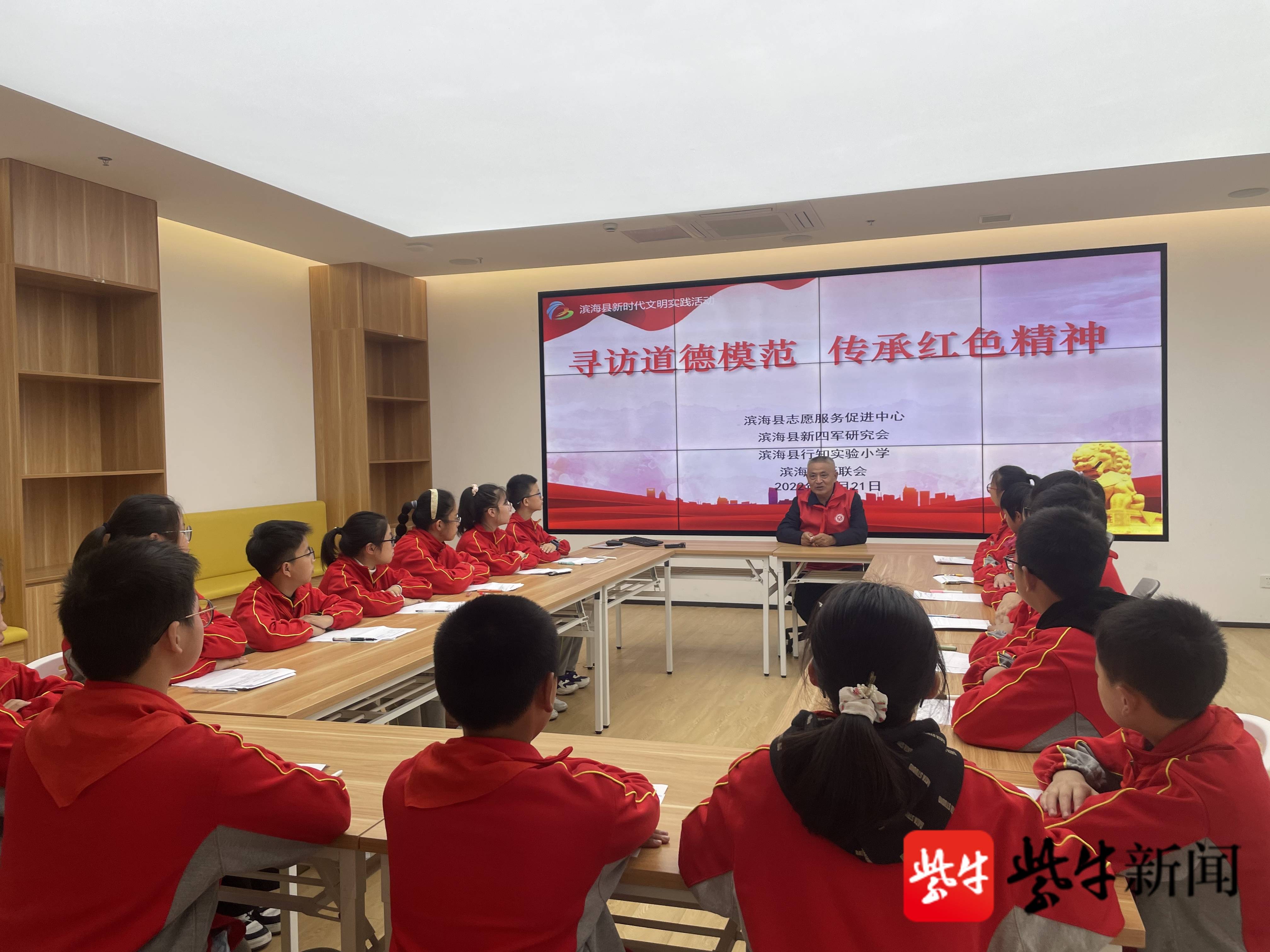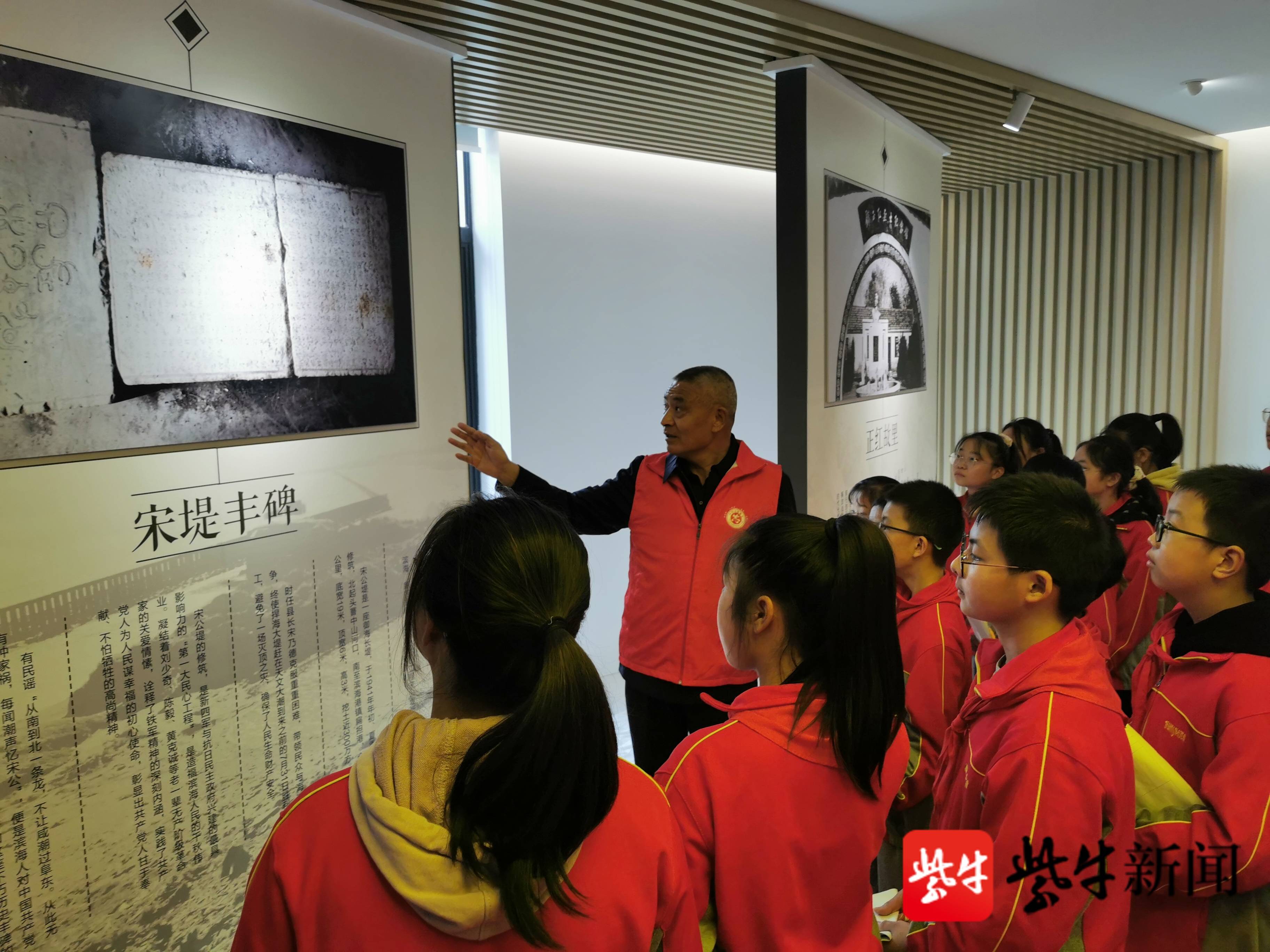 当天,少先队员代表专场来到滨海县新时代文明实践中心,观摩红色文化厅、滨海县新四军研究会工作室、中国好人工作室,少先队员认真聆听徐振理的精彩讲述。