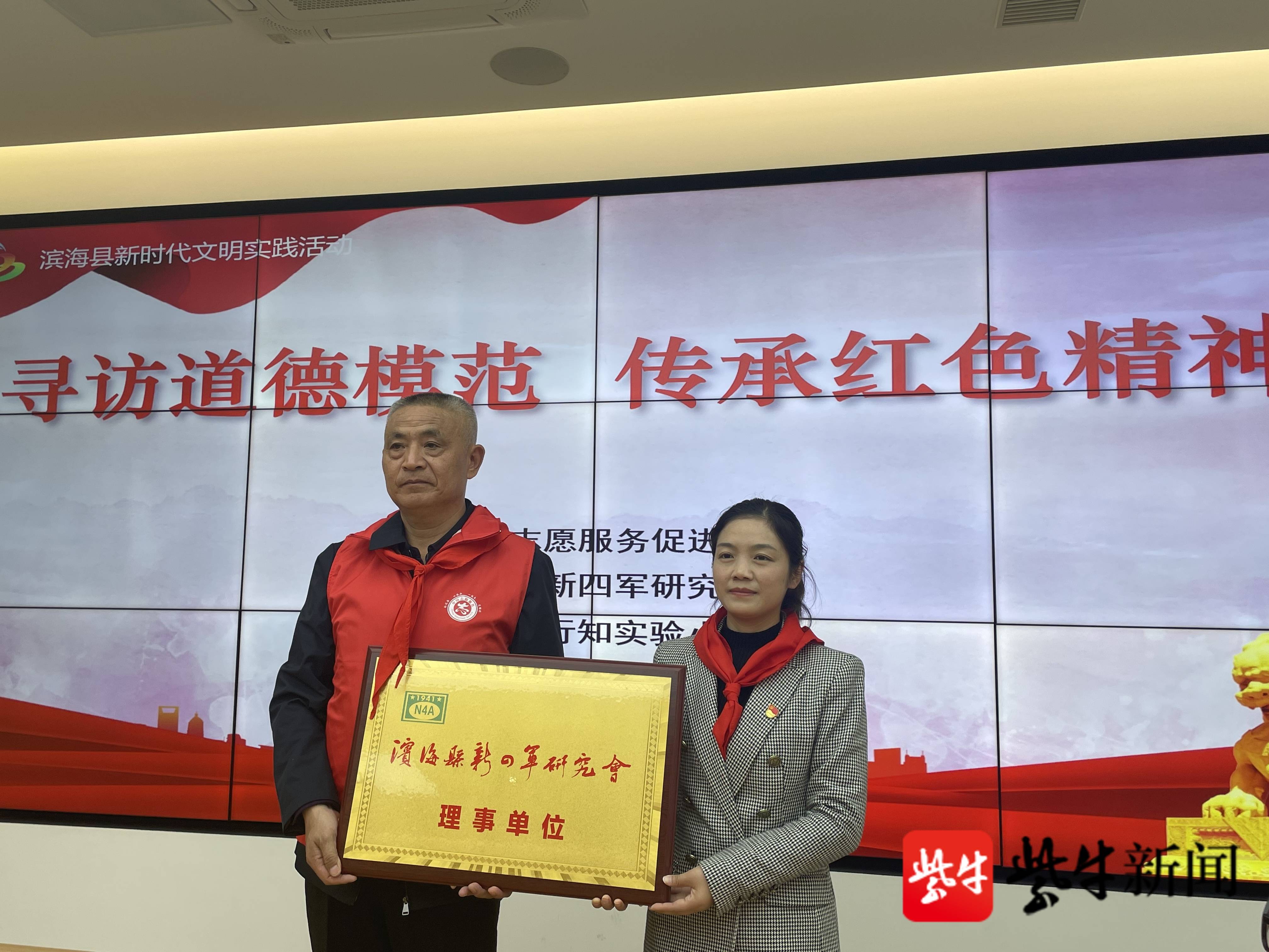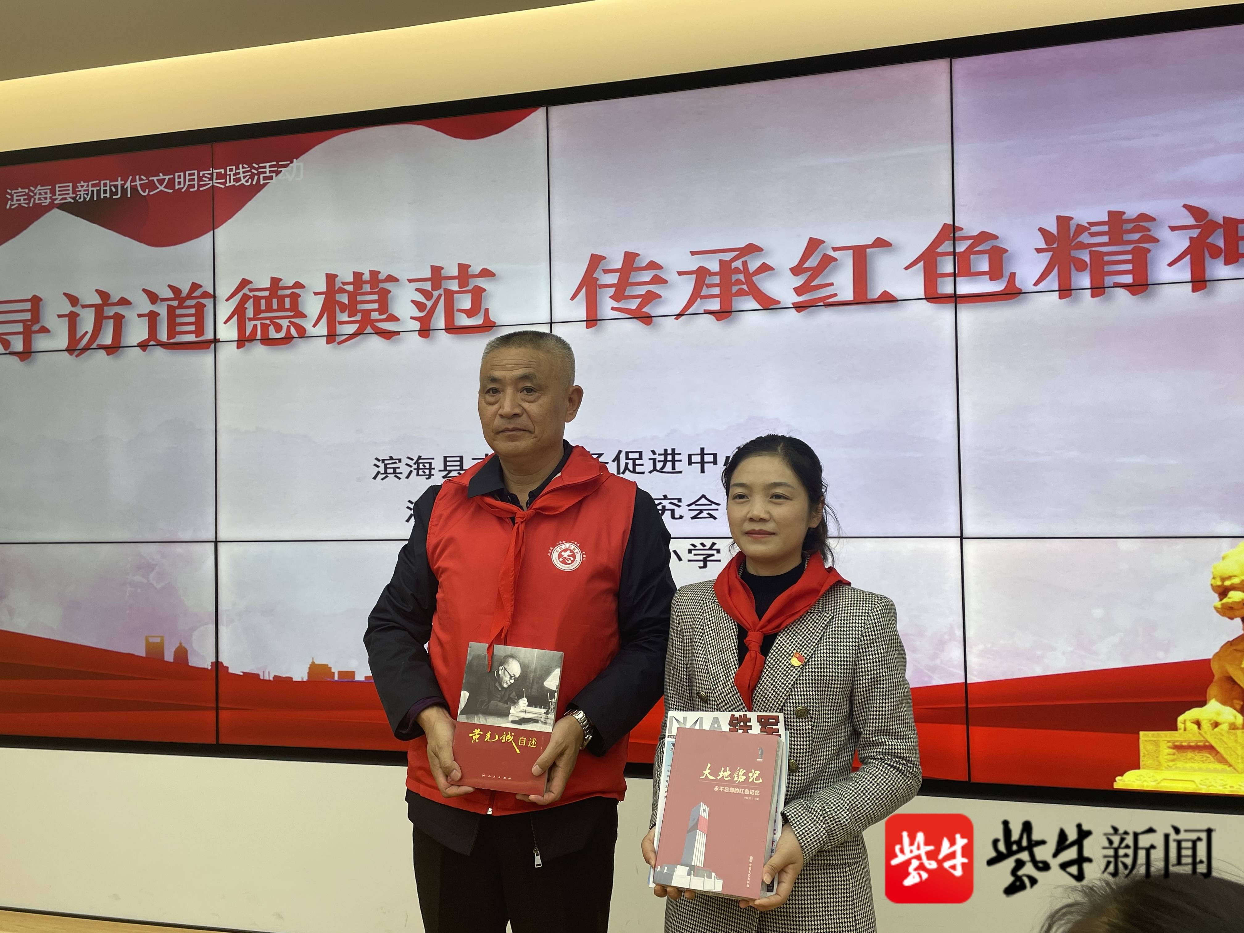 接着,举办“寻访道德模范,传承红色精神”交流活动。徐振理给滨海县新四军研究会理事单位——滨海县行知实验小学授匾,并捐赠《黄克诚自述》《宋乃德册页》《雷锋》《铁军》《大地铭记》等红色书刊。