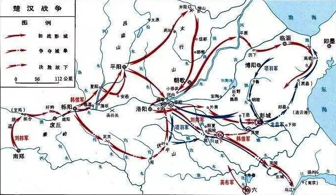 彭城一战,项羽以三万精兵大败刘邦五十六万大军,刘邦仅率数十人突围,成为世界军事史上以少胜多的典范。东汉荀悦《前汉记》对战争成败有一段经典分析,大凡决策之事,当应情而谋,因时而动,顺势而为,不能忘乎所以: