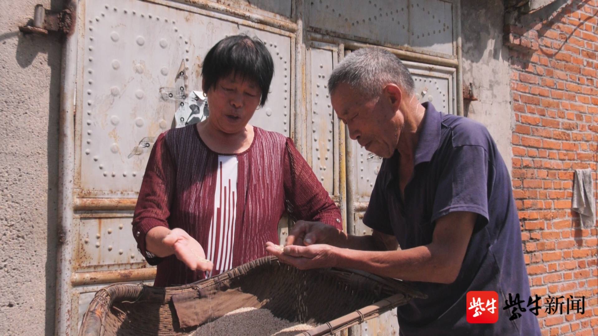刘安南(右)筛选芝麻