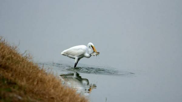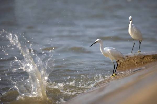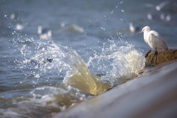 小白鹭身披白色羽毛,追寻波浪而来,仿佛是太湖边欢乐的音符。