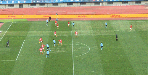 第47分钟,大连人扳平比分!商隐右路传到禁区,后点孙国文头球摆回来,中路曼佐基虚晃一枪,吕鹏后点无人防守,凌空打门将球打进。