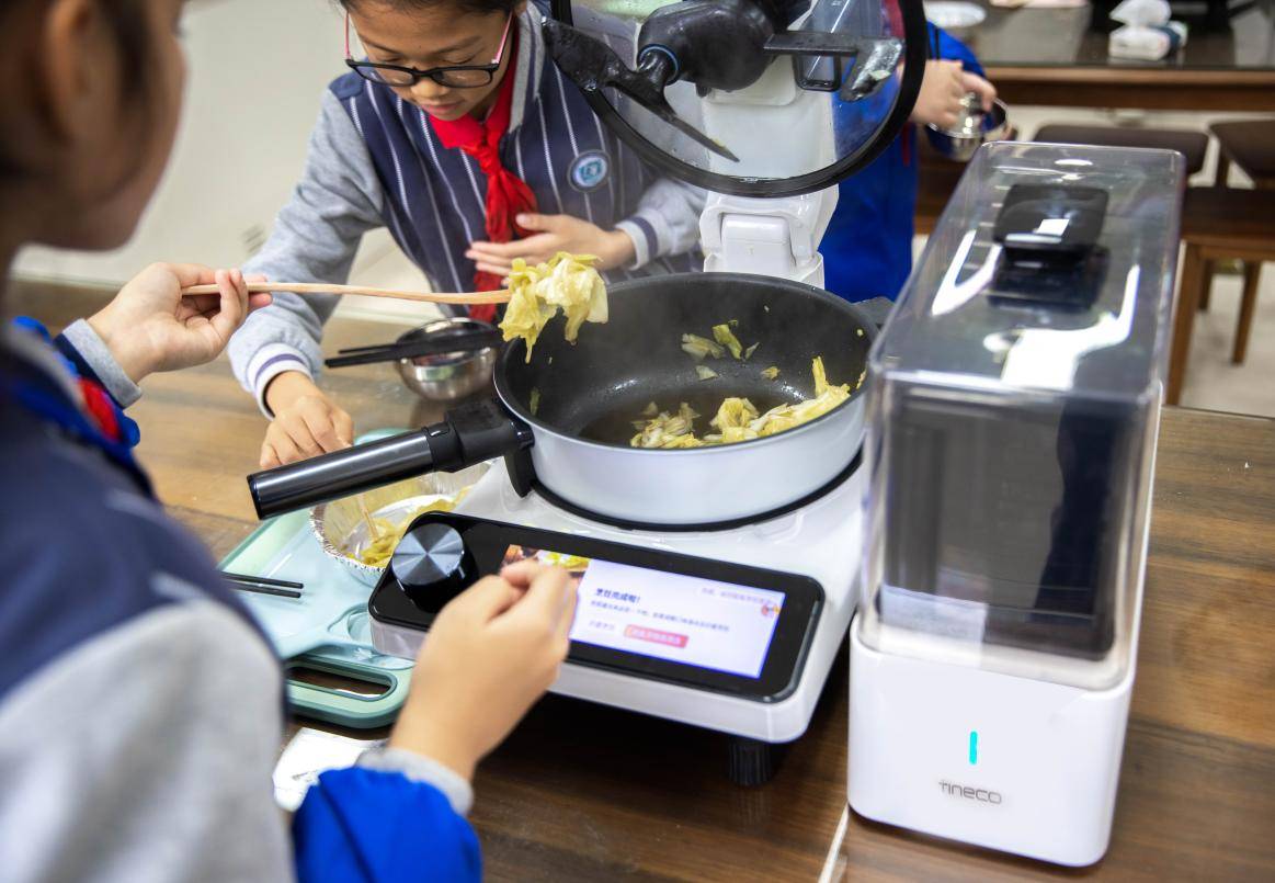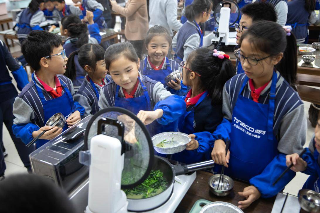 “烹饪与营养”已成为中小学生劳动课的必选内容,并为各学段学生设置了不同的目标。此次劳动公益课堂,添可在助力学校细化课程内容的同时,利用自身科技,为学生创造更有利于学习和亲身实践的外部条件,更是将生活技能、劳动理念融入课堂教学之中,让孩子们顺利完成从制定菜谱、备菜、翻炒、装盘到洗锅体验烹饪全过程。