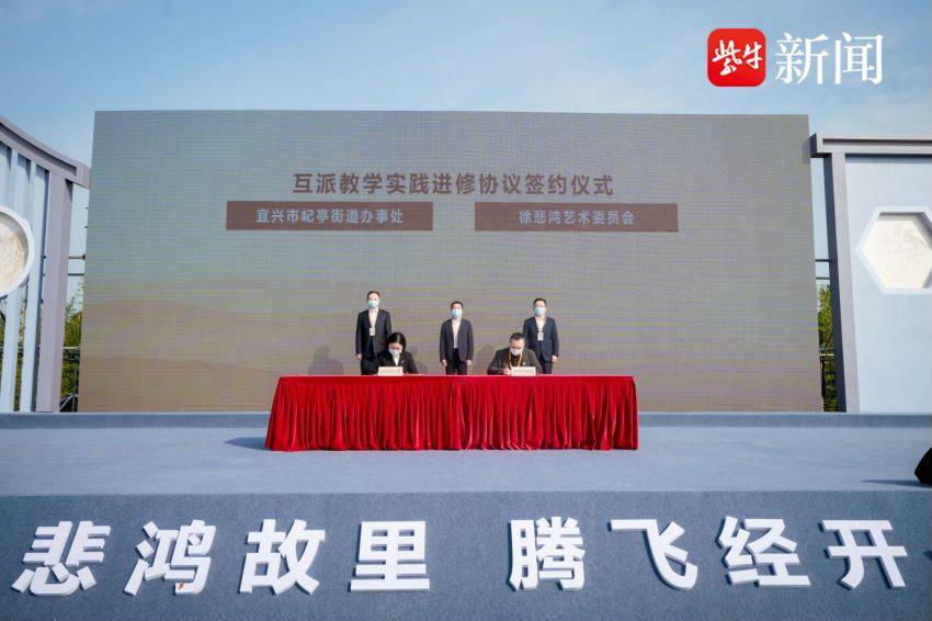 此次开幕式上,徐悲鸿艺术委员会与屺亭街道辖区内中小学签订互派教学实践进修协议。今年,经开区在培源科学城规划中还特意规划了宜兴市悲鸿中学。为了让悲鸿中学更具特色与吸引力,专门邀请了中国工程院院士、东南大学教授王建国进行“操刀”设计。中学定址宜兴经开区培源科学城,总投资约3亿元,分地上和地下两块,尤其值得一提的是大面积的地下建筑面积将接送的家长从地面转向地下,在缓解城市干道交通压力的同时为学生提供更多的活动区域,在特殊天气的情况下也不影响学生们的课外活动。(季娜娜)