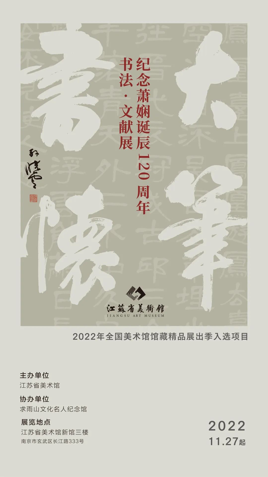 纪念萧娴诞辰120周年,“大笔书怀”文献展27日将在省美术馆揭幕