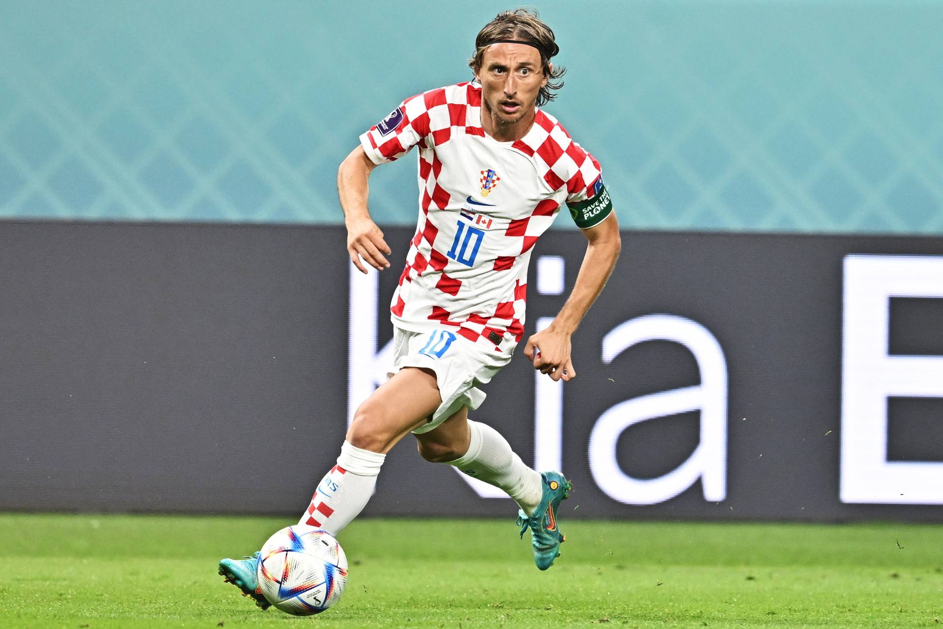 克罗地亚队球员莫德里奇在比赛中。