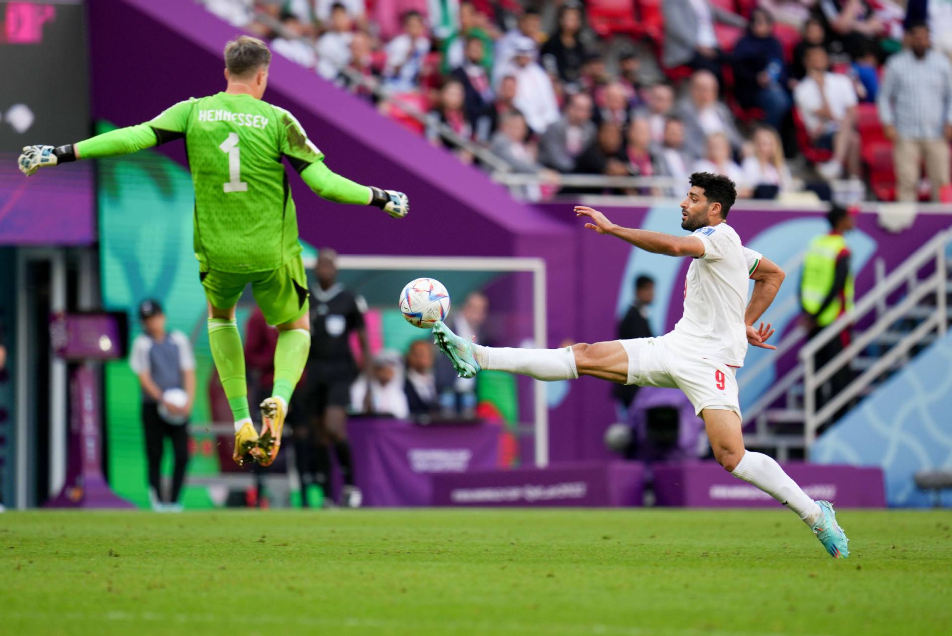 伊朗9号(右)塔雷米在比赛中。