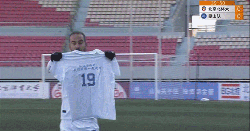 进球之后,科维奇拿出了一件特制的19号球衣,上面印着“加油冯伯元,我们与你一起战斗”的字样。在11月21日昆山队对阵江西北大门队的比赛中,冯伯元开场5分钟受伤离场。科维奇代表全队,也将这一粒进球送给受伤的冯伯元,希望他能够早日康复,重回赛场。