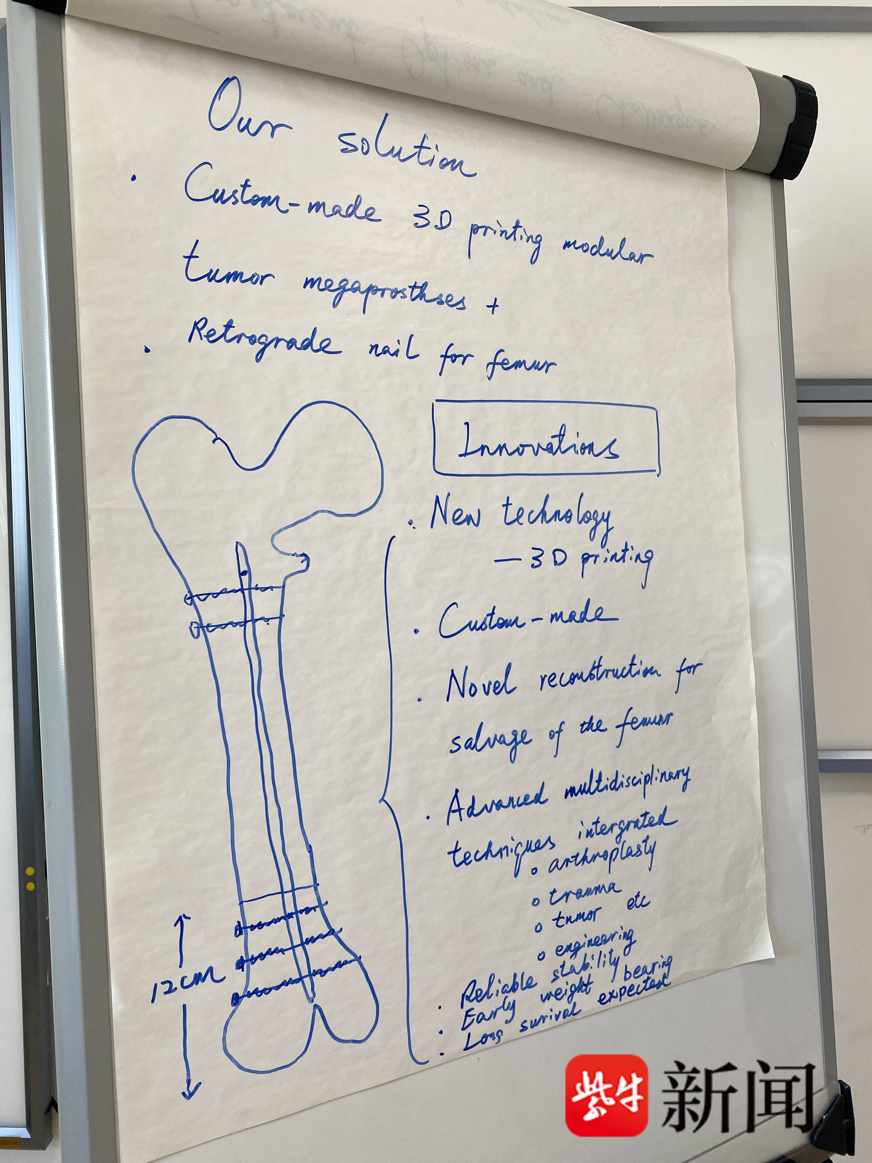 经仔细分析病情后,刘雅克与团队成员整合最新数字骨科、关节外科、创伤骨科、生物医学工程等多学科前沿技术,针对患者具体特点,精心设计了“3D打印个性化定制轴性固定新型股骨肿瘤假体”。