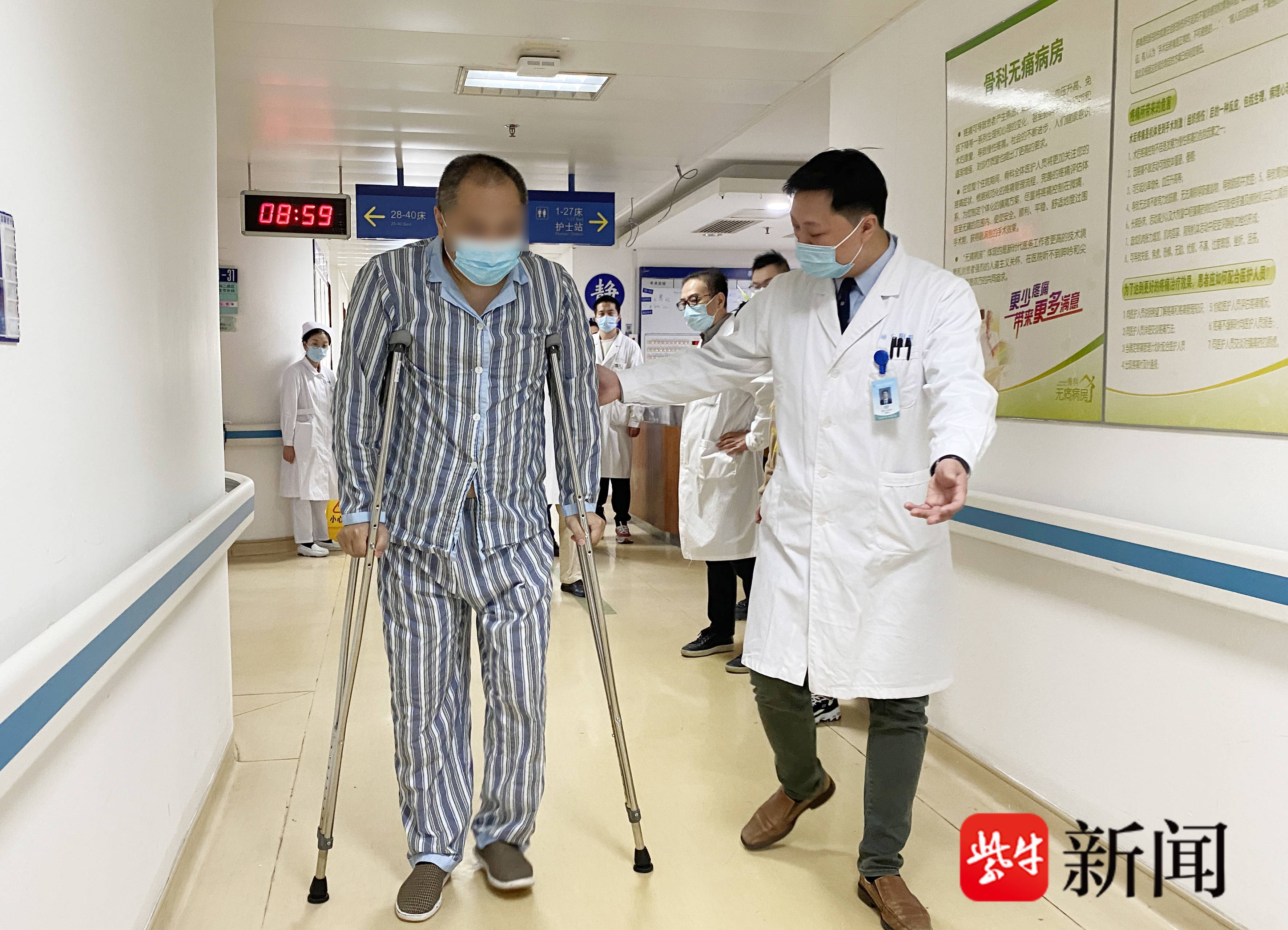 12月2日上午,在南通大学附属医院关节外科病区,44岁的张先生(化名)在副主任医师刘雅克的鼓励下,站立起来并沿着病区走廊走了一个来回。“两年了,这还是我第一次自己走了这么远的路,本以为这辈子不可能再像正常人一样走路了,没想到通过这次手术我还能实现这个愿望。”张先生兴奋地向记者说道。