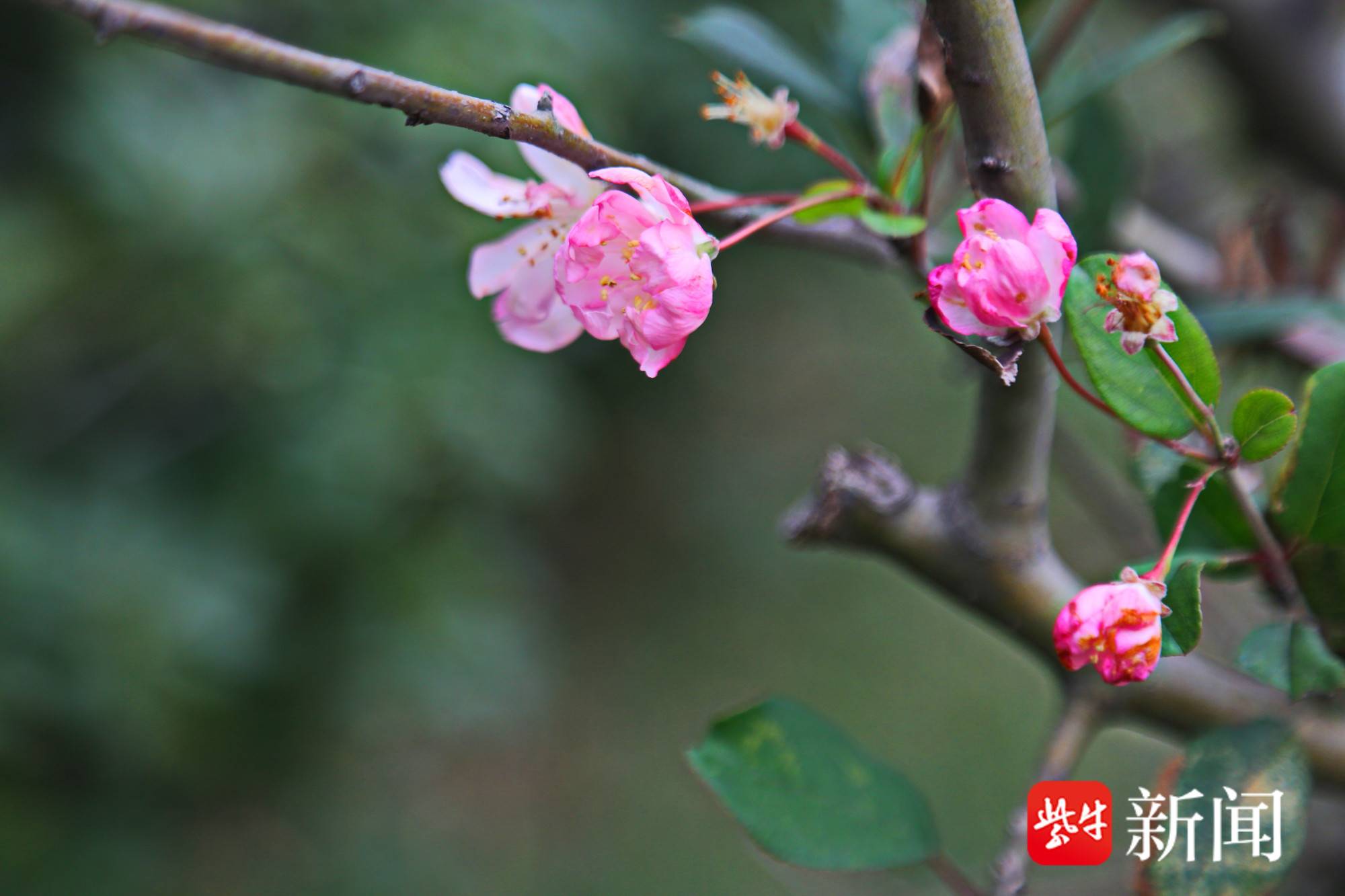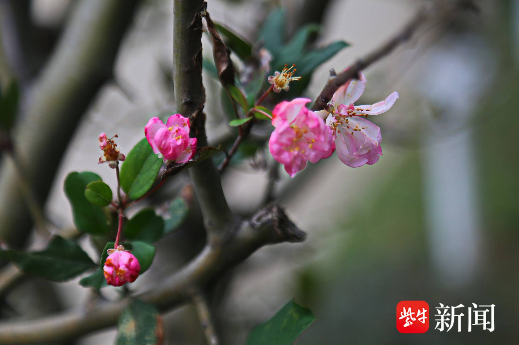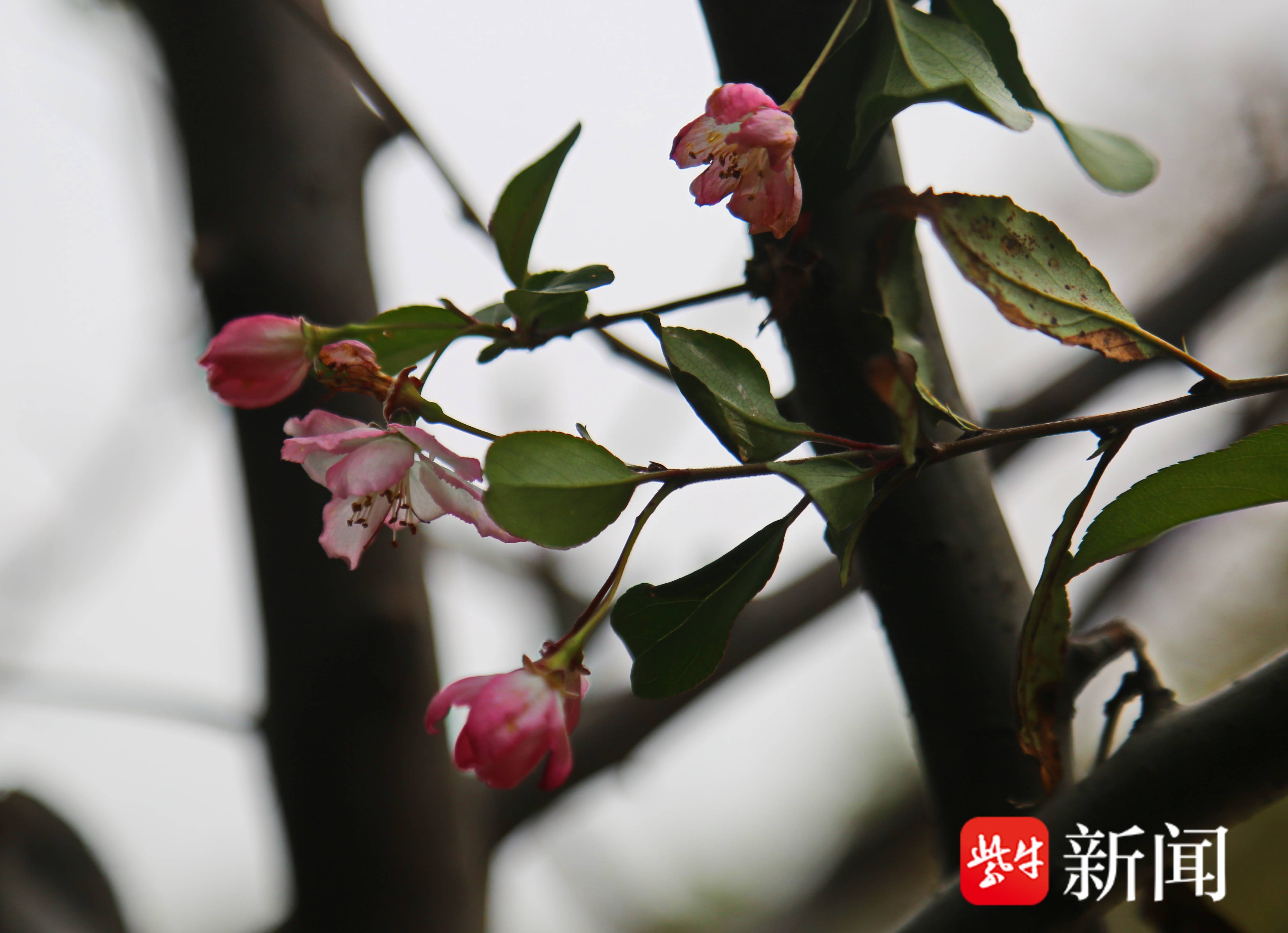 在这个寒冬里,南京幕府山上的海棠竟然开花了!