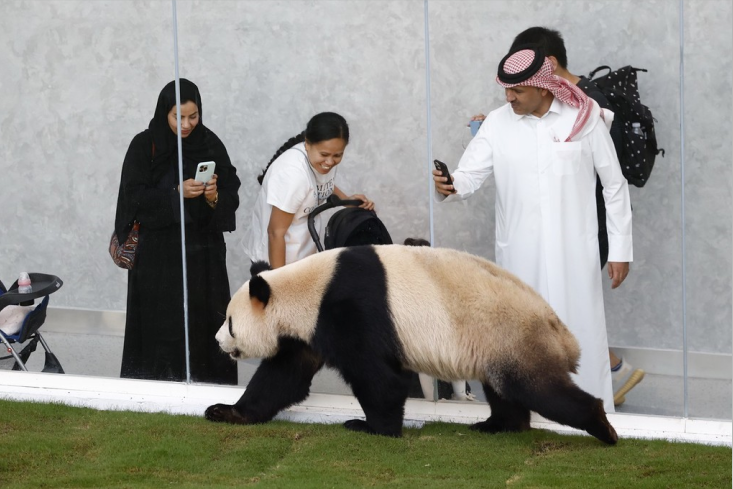 作为中国送给卡塔尔的“世界杯礼物”,两只大熊猫“京京”和“四海”于今年10月乘专机抵达卡塔尔首都多哈,直接“入住”在多哈的新家豪尔熊猫馆。出于对中国大熊猫的喜爱,卡塔尔方面将京京和四海以阿拉伯语分别命名为“苏海尔”和“索拉娅”。