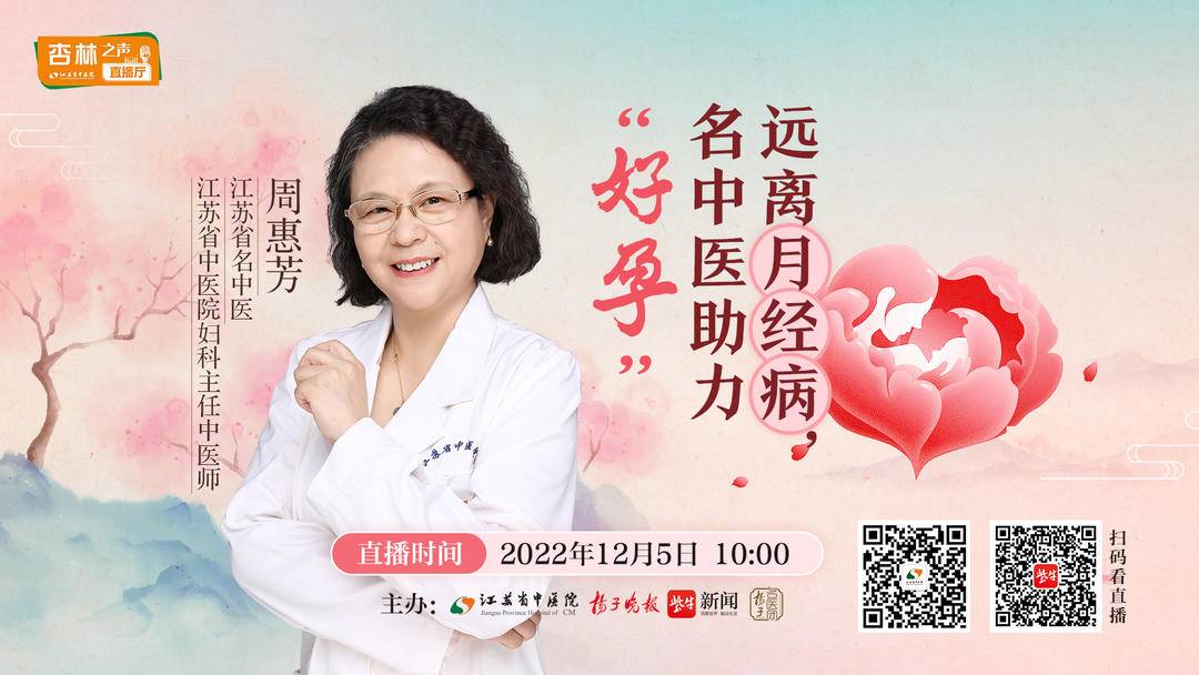 痛经、闭经、经量少、经后淋漓不尽……谈起妇科疾病的话题,总离不开伴随女性40多年的“大姨妈”(月经)。“大姨妈”是一种特殊的生理现象,关联到女性卵巢是否健康,也是女性能否健康受孕的重要信号。本期江苏省中医院与扬子名医团联办的“杏林之声直播间”,请来江苏省名中医、江苏省中医院(南京中医药大学附属医院)妇科专家周惠芳教授,线上直播观看人数超过了34万。名中医应对月经病的调理之道,这堂女性必修课,赶紧来听听吧!