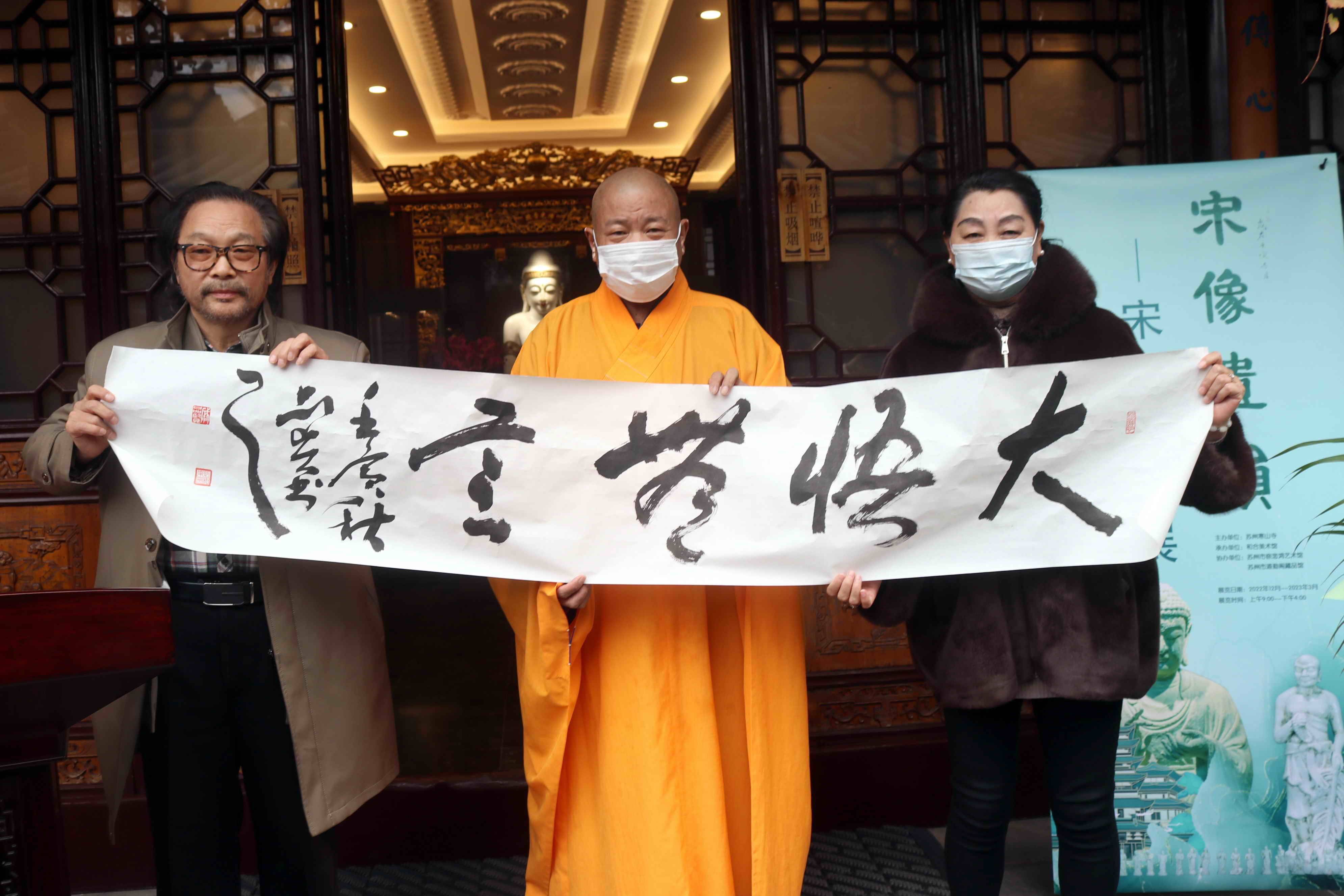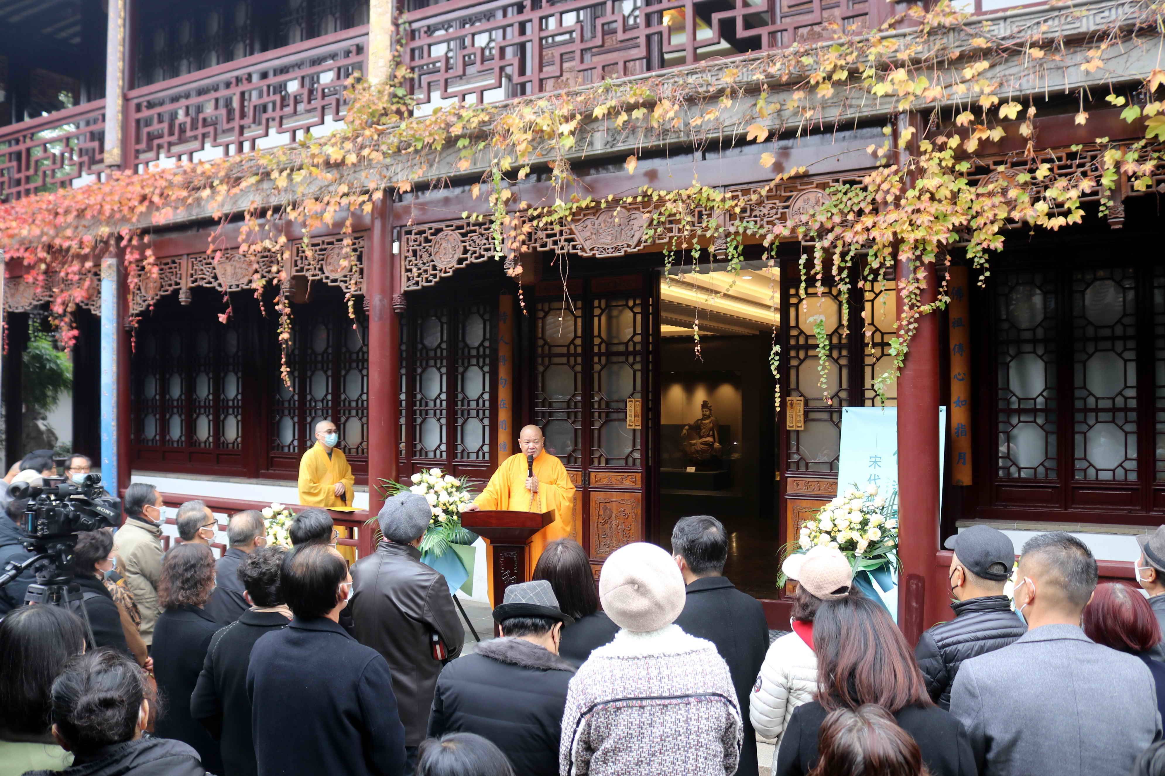 2022年12月8日上午九时三十分,姑苏城外寒山寺和合美术馆内梵呗声声,禅音袅袅,一场庄严的佛事活动正在隆重举行。它不仅显示出参与者对宋代佛像的虔敬,并以此作为一个序曲,徐徐拉开了十时整《“宋像遗韵”—宋代佛像展》正式开展的帷幕。