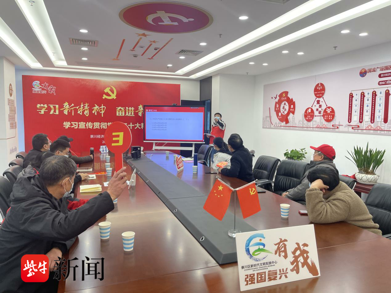 近日,南通崇川经济开发区山港桥社区依托新时代文明实践站走进国城广场园区开展了“学习新精神 奋进新征程”二十大精神学习活动。通过设置讲座辅导、知识竞赛、反腐倡廉等活动环节,促进党的二十大精神入脑入心,切实把辖区党员群众的思想和行动统一到党的二十大精神上来,更深层次地凝聚“红力量”,激励辖区企业党员、职工在新时代、新征程上展现新担当。