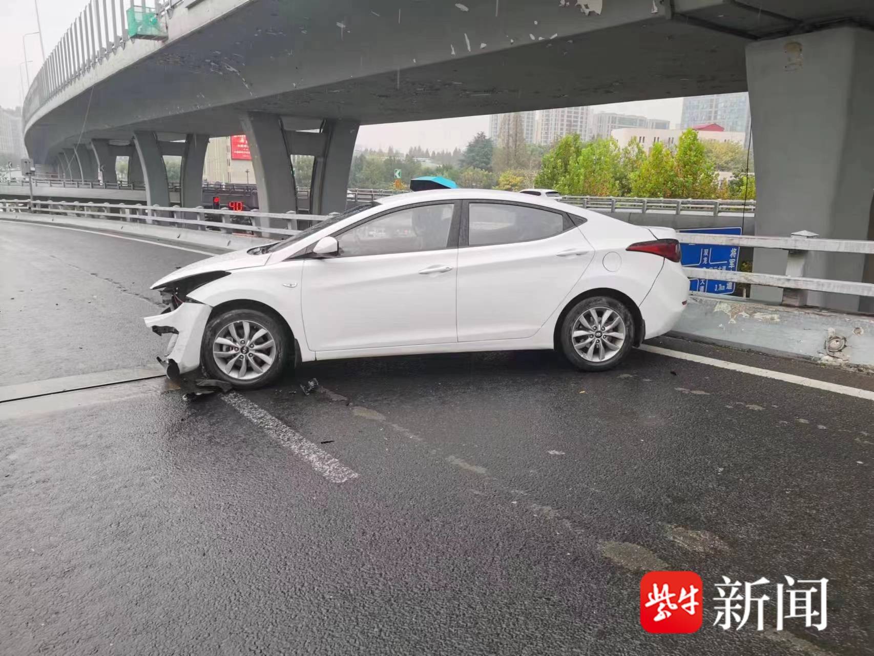 扬子晚报网12月9日讯(通讯员 张明月 记者 梅建明)近日,南京江宁南站交警中队接到一起警情。报警人称,在该中队辖区双龙高架宏运大道上桥口处,发生了一起小轿车碰撞护栏的单方交通事故。