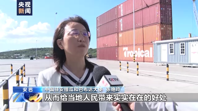 中国驻安提瓜和巴布达大使 张艳玲:圣约翰深水港这个“一带一路”框架下,有标志性作用的项目,在(安提瓜和巴布达)的成功落地,应该说会大幅提升本地区在客运、货运、内外连通方面的畅通程度,从而给当地人民带来实实在在的好处,持续推进“一带一路”走深走实。