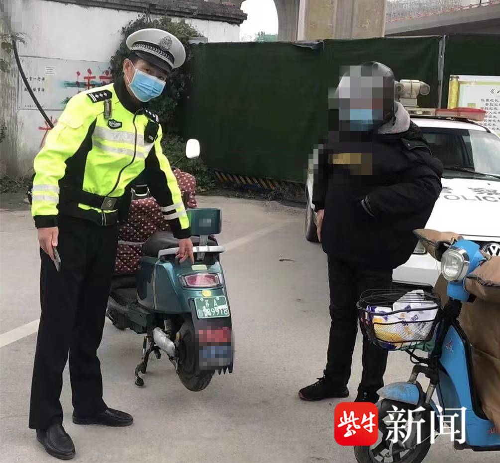 扬子晚报网12月14日讯(记者 郭一鹏 通讯员 王立)近日,南京交警七大队执勤四中队警力在和燕路晓庄广场路口查纠非机动车交通违法时,一辆电动自行车突然停下,交警见状立即上前核查,结果发现该车车牌被白色胶带遮挡部分数字。