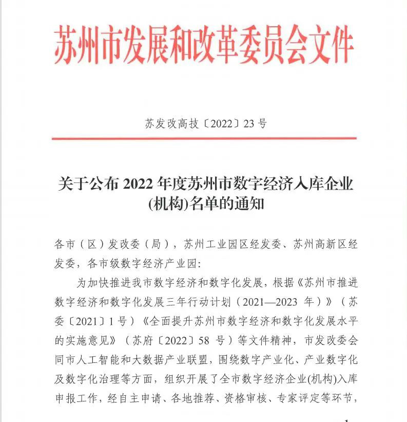 苏州市数字经济示范企业、苏州市数字经济企业入库是苏州推进数字经济和数字化发展的重点工作,由苏州市发改委会同苏州市人工智能和大数据产业联盟主导开展,围绕数字产业化、产业数字化及数字化治理等方面,经企业自主申请、各地推荐、资格初审和专家评定等环节后,最终确认名单。