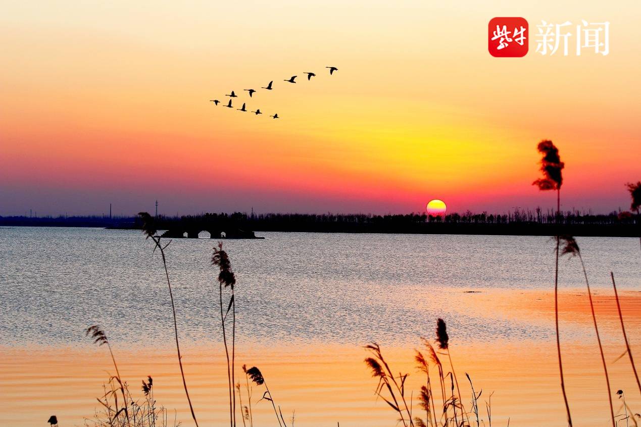 句容赤山湖鸿雁追日