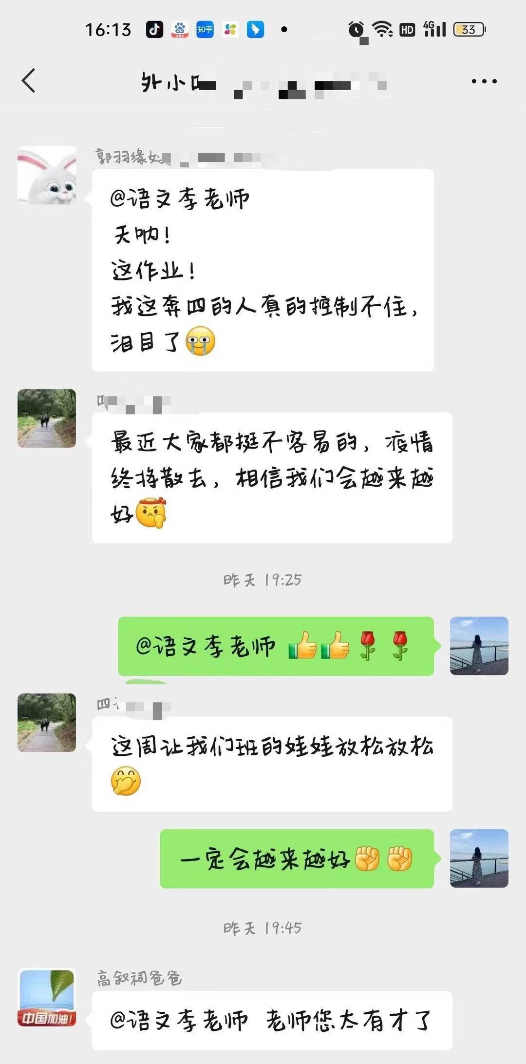 “最近生病的孩子太多了,看到很多同学带病坚持上课,坚持完成作业,作为老师真的很感动。”扬中市外国语小学四年级语文老师李扬是这则家庭作业的首发人,她告诉记者,目前同学们是居家上网课的状态,考虑到学生们的身体状态不一,所以本周作业她便设计了这样的几个“套餐”,让孩子们根据自己的情况进行选择。记者注意到,除了上文提到的“杨过”“钢铁侠”套餐,针对家人阳了的同学,还有“美羊羊”套餐——这些同学在做好自身防护的同时,可以给阳了的家人倒一杯水、切一个水果,再说一句暖心安慰的话。不仅如此,当天的语文作业老师也向同学们提出了两个小“要求”:1.请分享你们最近的心情,或者最想说的话,或者想说却无处可说的心事。2.好久不见,老师很想念你们,请大家拍一张自己开心微笑或是好好吃饭的照片分享给老师吧,就当我们见面了!这份作业一出,随即得到了家长们的点赞。有家长感慨道,这样的作业让孩子学着关心家人、关爱健康,很应景也很暖心。“孩子的成长就在这一瞬间。”“居家学习也有诗和远方。”